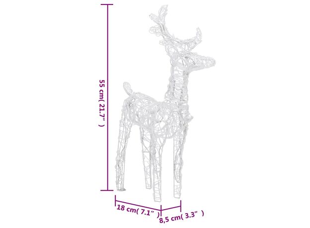 Fabricat din acril și PVC în jurul unui cadru metalic, acest ren luminos este perfect rezistent la intemperii în timpul sezonului de sărbători. Este iluminat cu 160 de becuri LED, care sunt eficiente din punct de vedere energetic și durabile.
