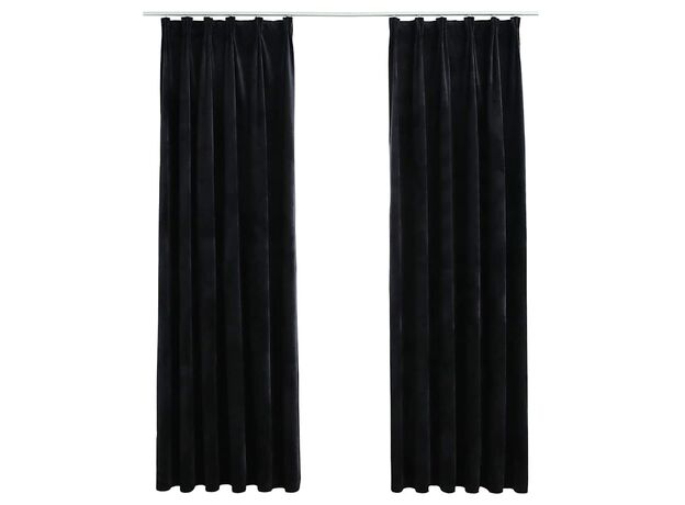 Draperii opace, 2 buc., negru, 140x225 cm, catifea, cu cârlige