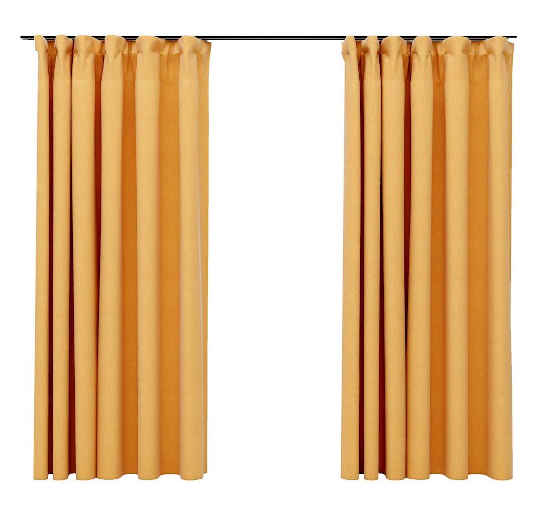Draperii opace aspect in, cârlige, 2 buc., galben, 140 x 175 cm