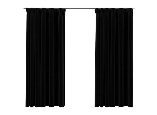 Draperii opace aspect in, cârlige, 2 buc., negru, 140 x 175 cm