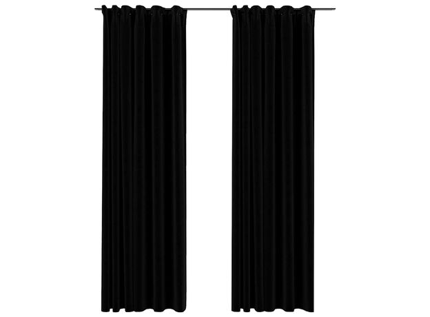 Perdele opace aspect pânză, cârlige, 2 buc., negru, 140x225 cm