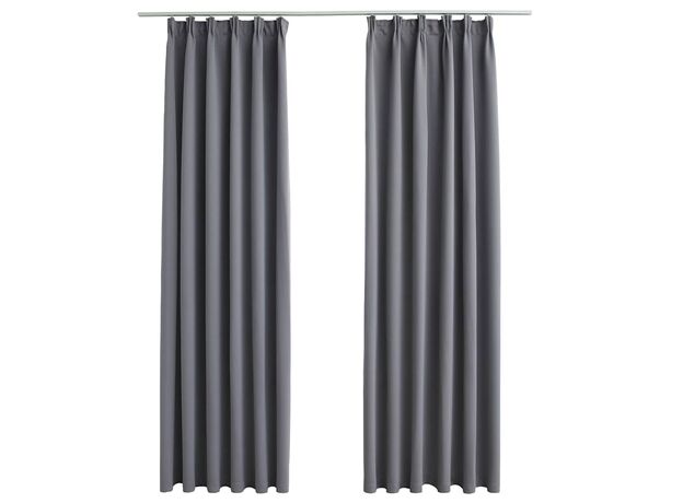 Draperii opace cu cârlige, 2 buc., gri, 140 x 225 cm