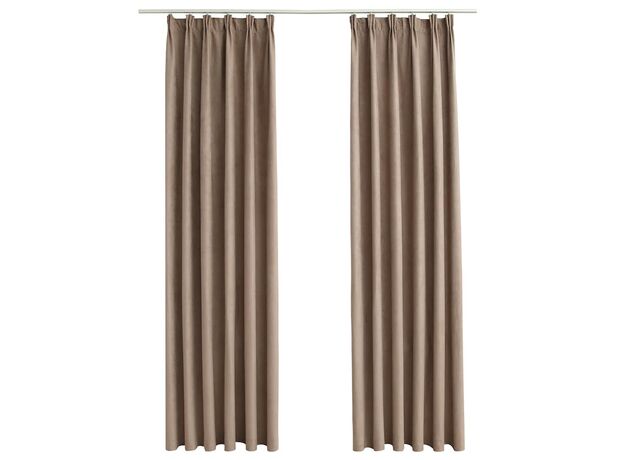 Draperii opace cu cârlige, 2 buc., gri taupe, 140 x 175 cm