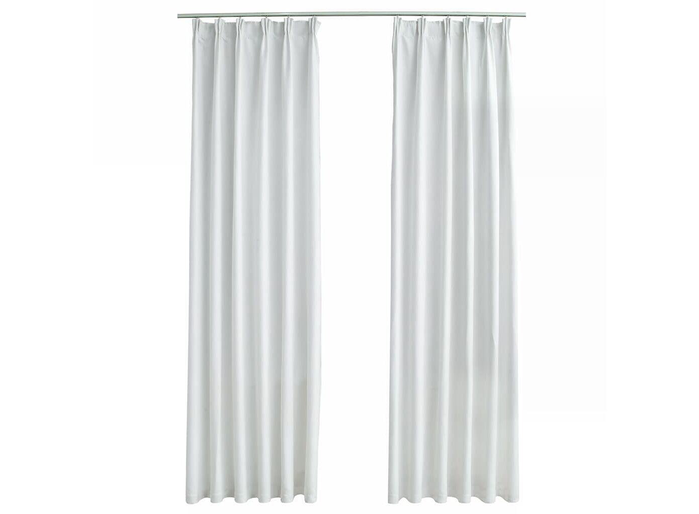 Draperii opace cu cârlige, 2 buc., alb ivoriu, 140 x 175 cm