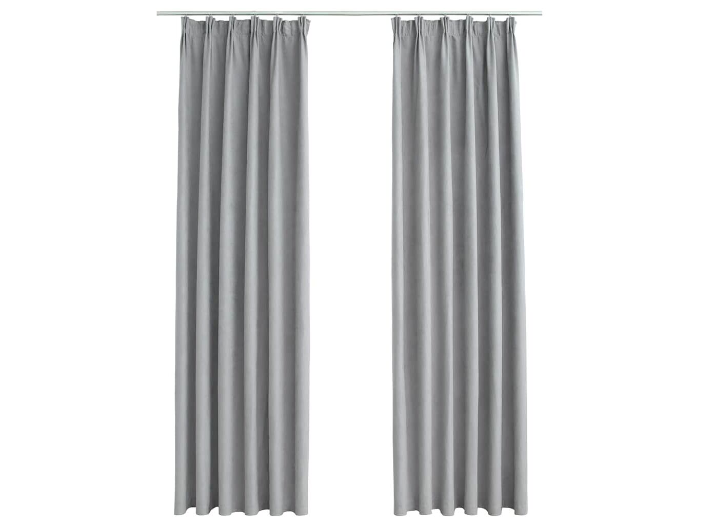 Draperii opace cu cârlige, 2 buc., gri, 140 x 225 cm
