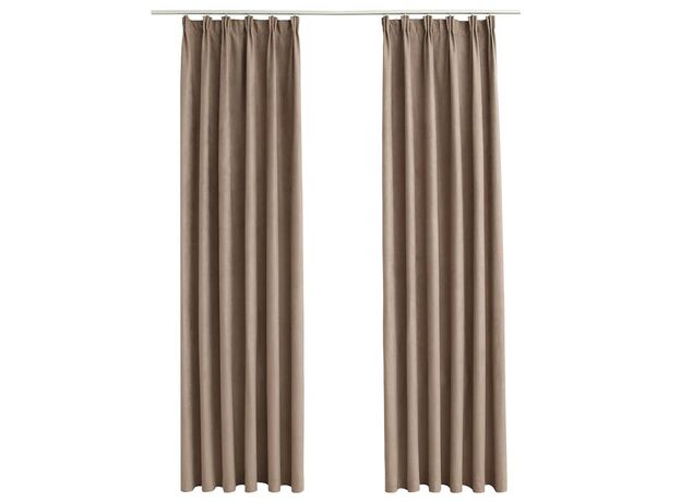Draperii opace cu cârlige, 2 buc., gri taupe, 140 x 225 cm