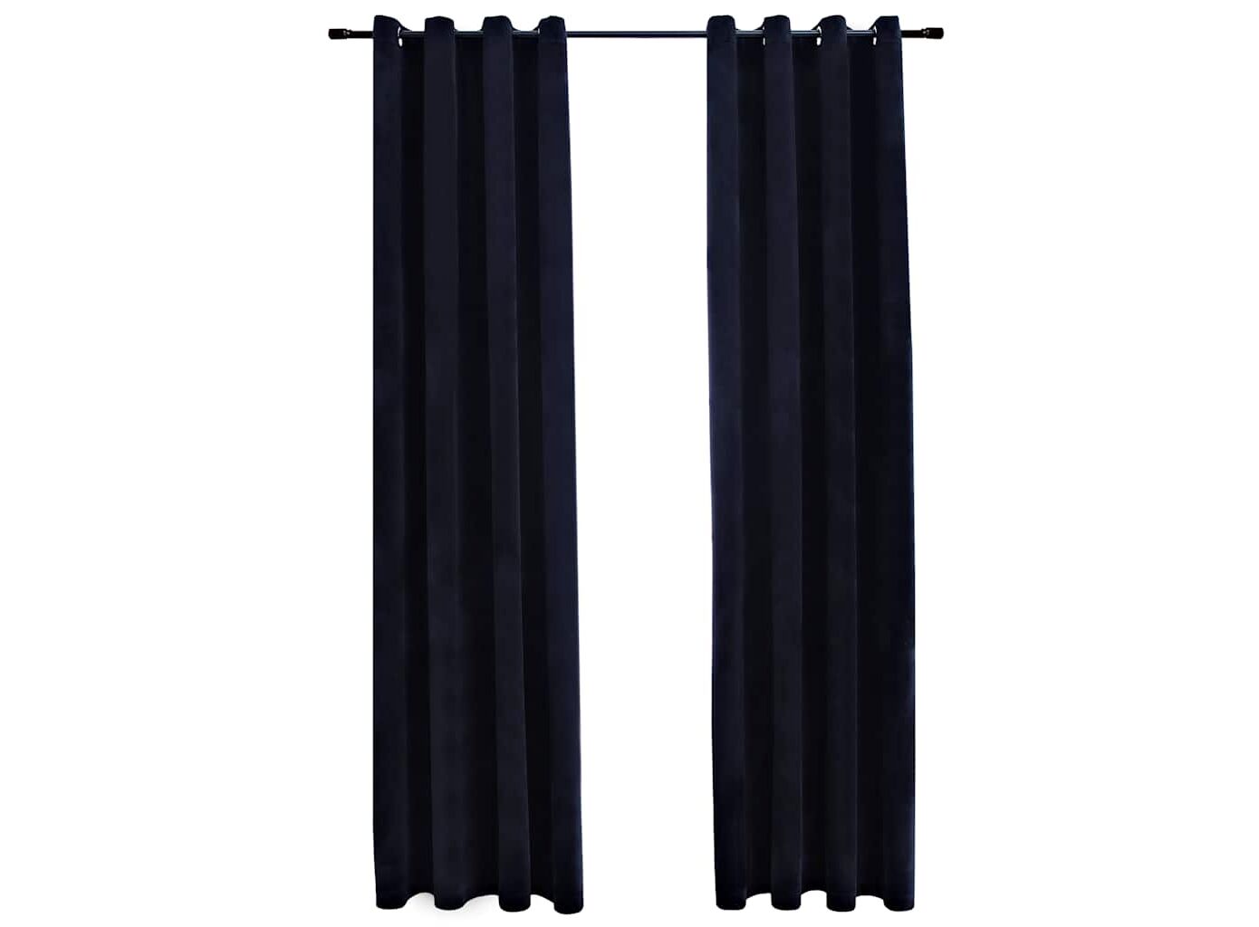 Draperii opace cu inele, 2 buc., negru, 140 x 245 cm, catifea