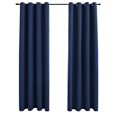 Draperii opace cu inele metalice, 2 buc, albastru, 140 x 245 cm