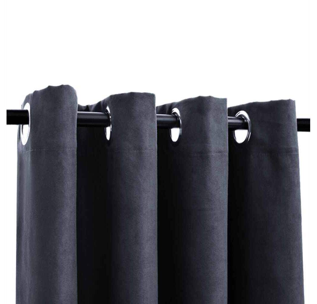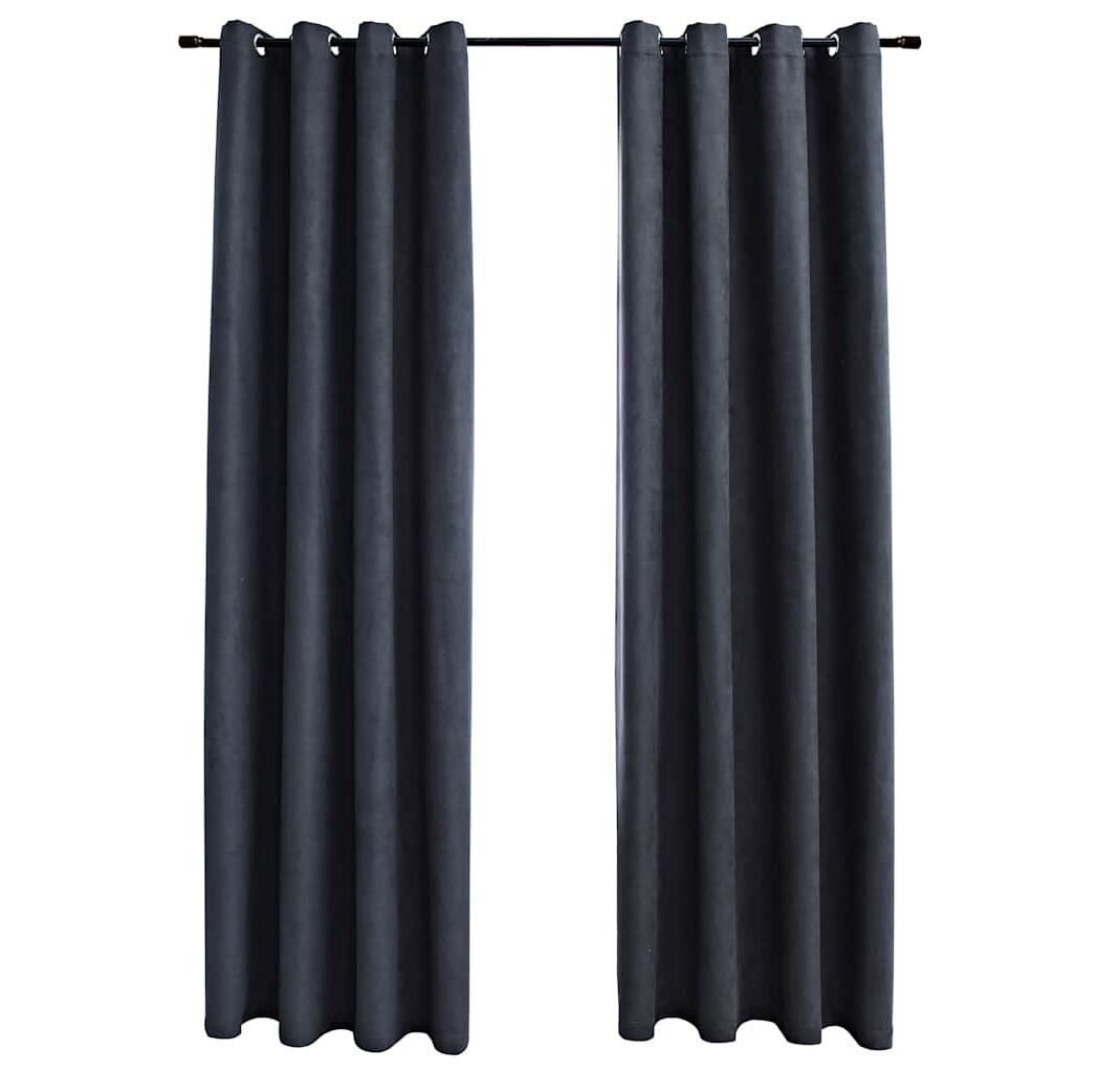Draperii opace cu inele metalice, 2 buc, antracit, 140 x 225 cm
