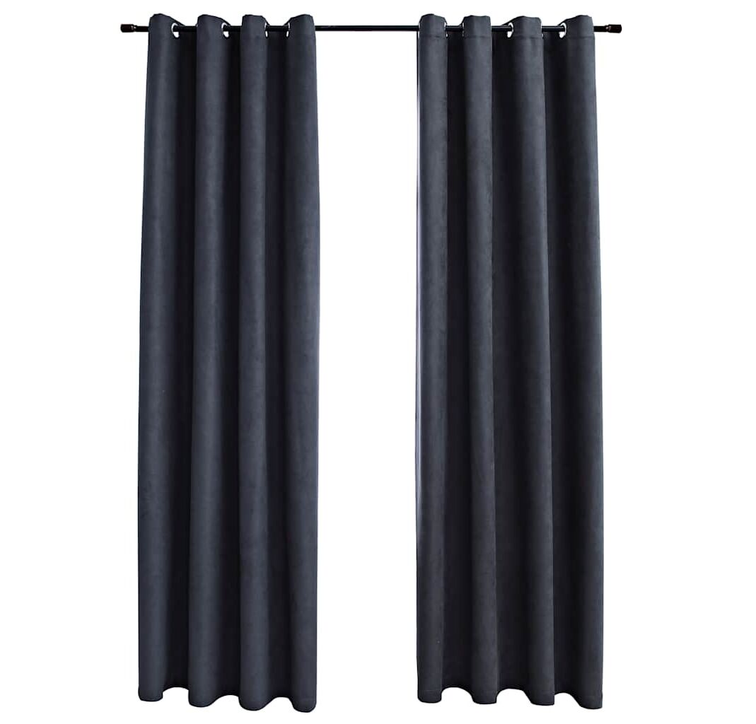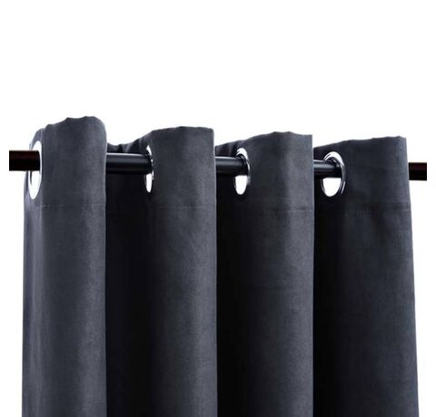 Draperii opace cu inele metalice, 2 buc., antracit, 140x175 cm