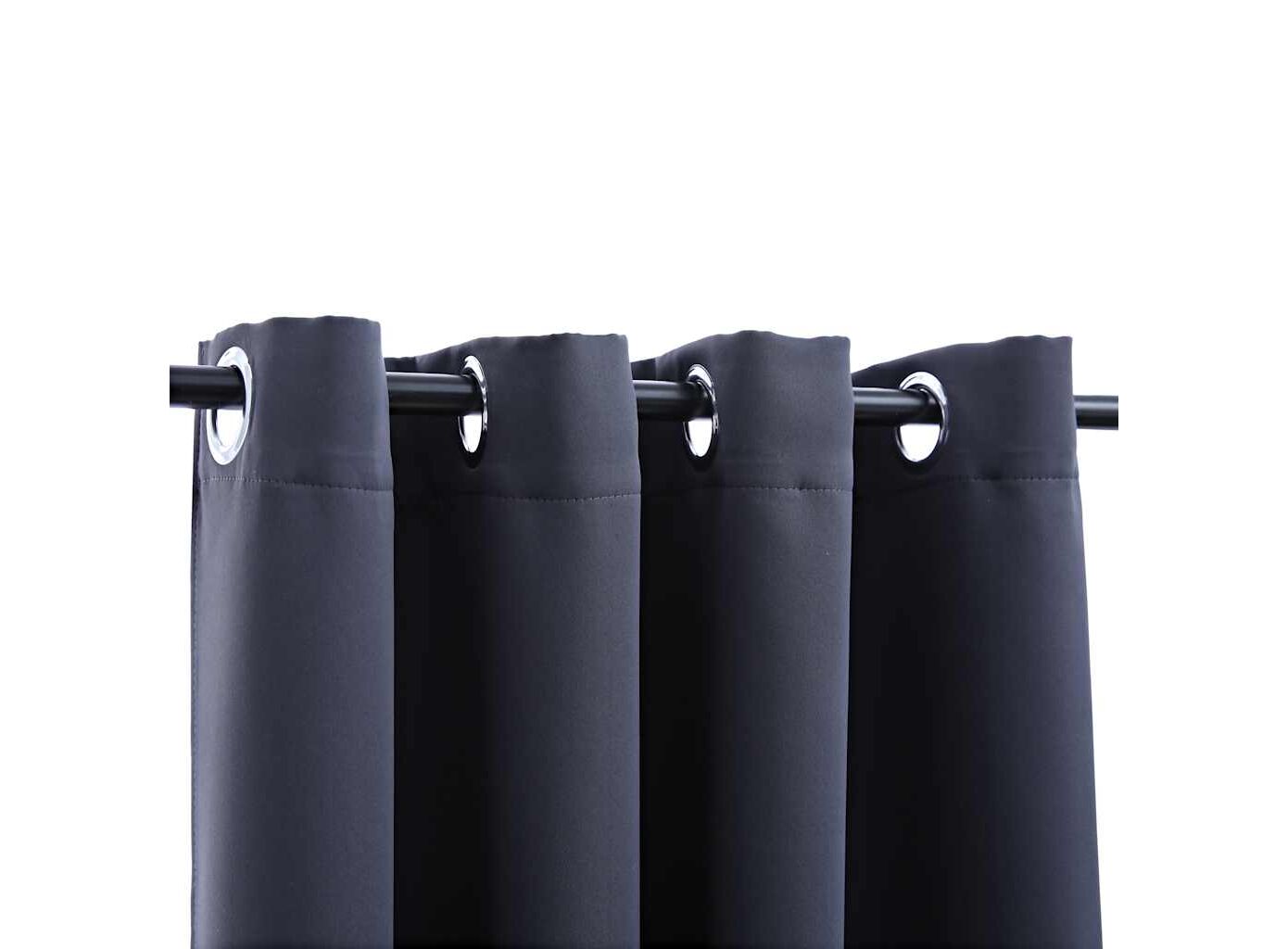 Draperii opace cu inele metalice 2 buc., antracit, 140 x 245 cm