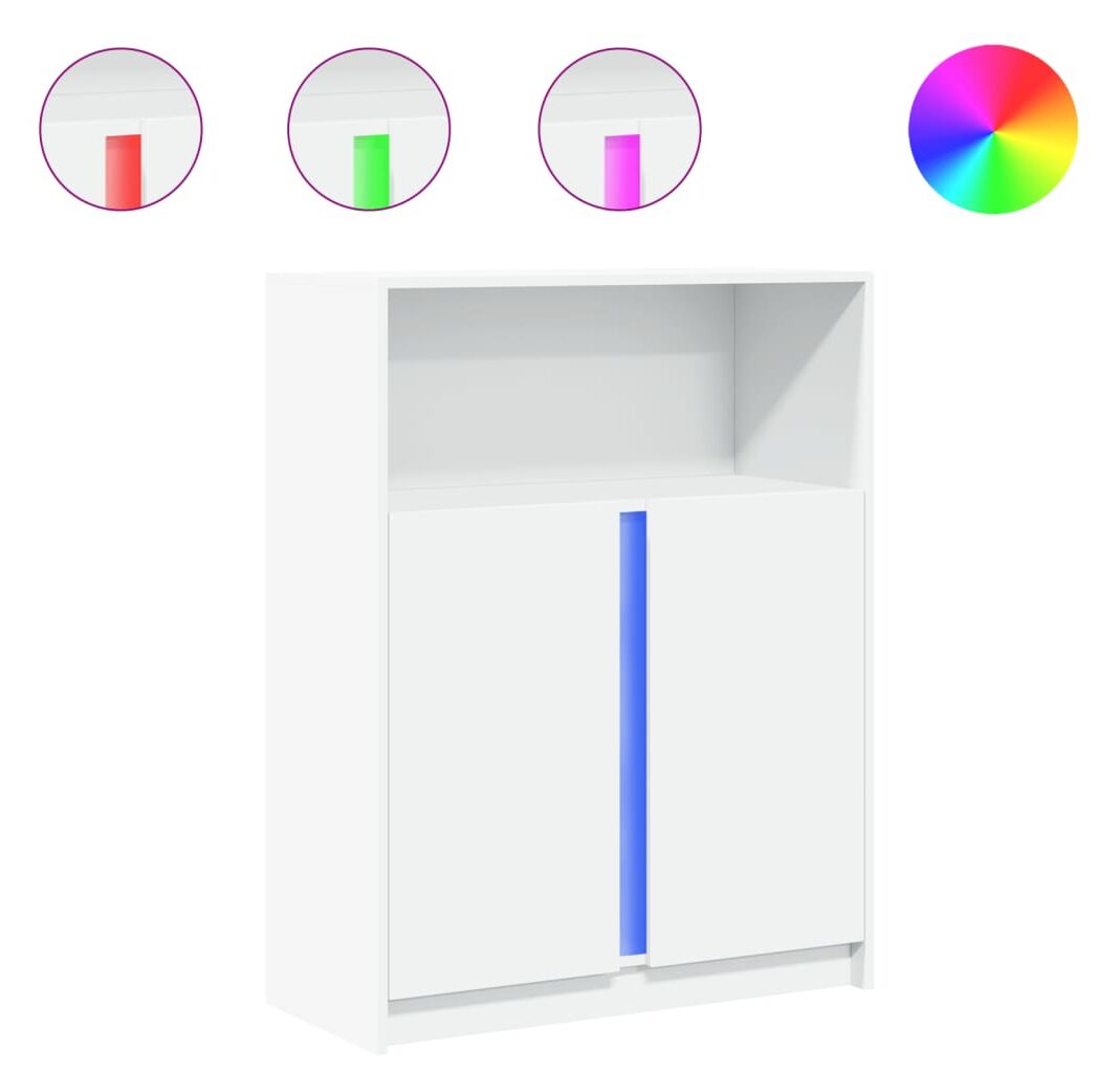 - Lumini LED RGB: Dulap este echipată cu lumini LED RGB vibrante. Cu diverse meniuri personalizabile, puteți schimba fără efort culoarea luminilor și chiar le puteți seta să se ajusteze automat. Aceste lumini cu LED nu numai că îmbunătățesc aspectul contemporan al servantei, dar se adaugă și atractivității sale moderne