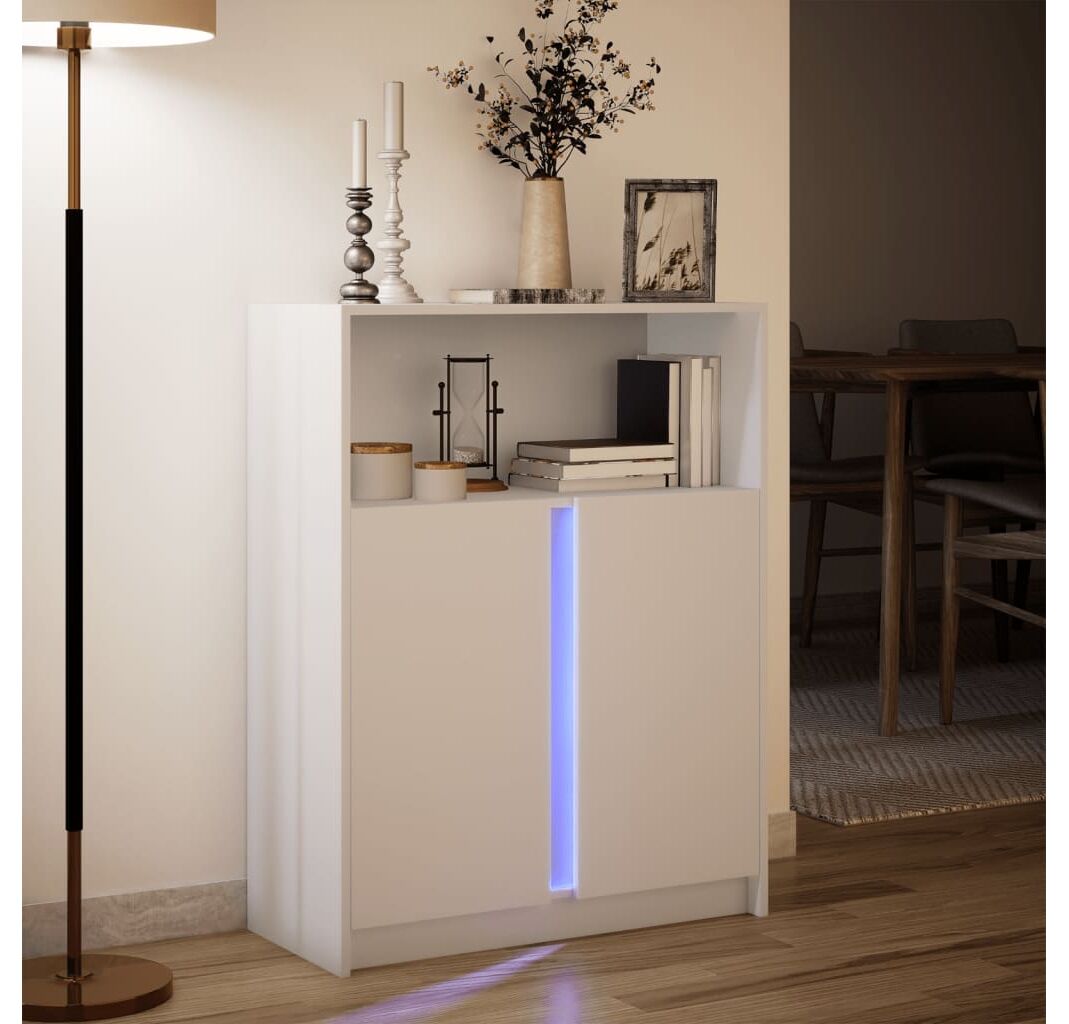 Decorați-vă camera cu această dulap modernă cu lumini LED, care se îmbină cu ușurință cu mobilierul, în orice stil din locuința dvs.