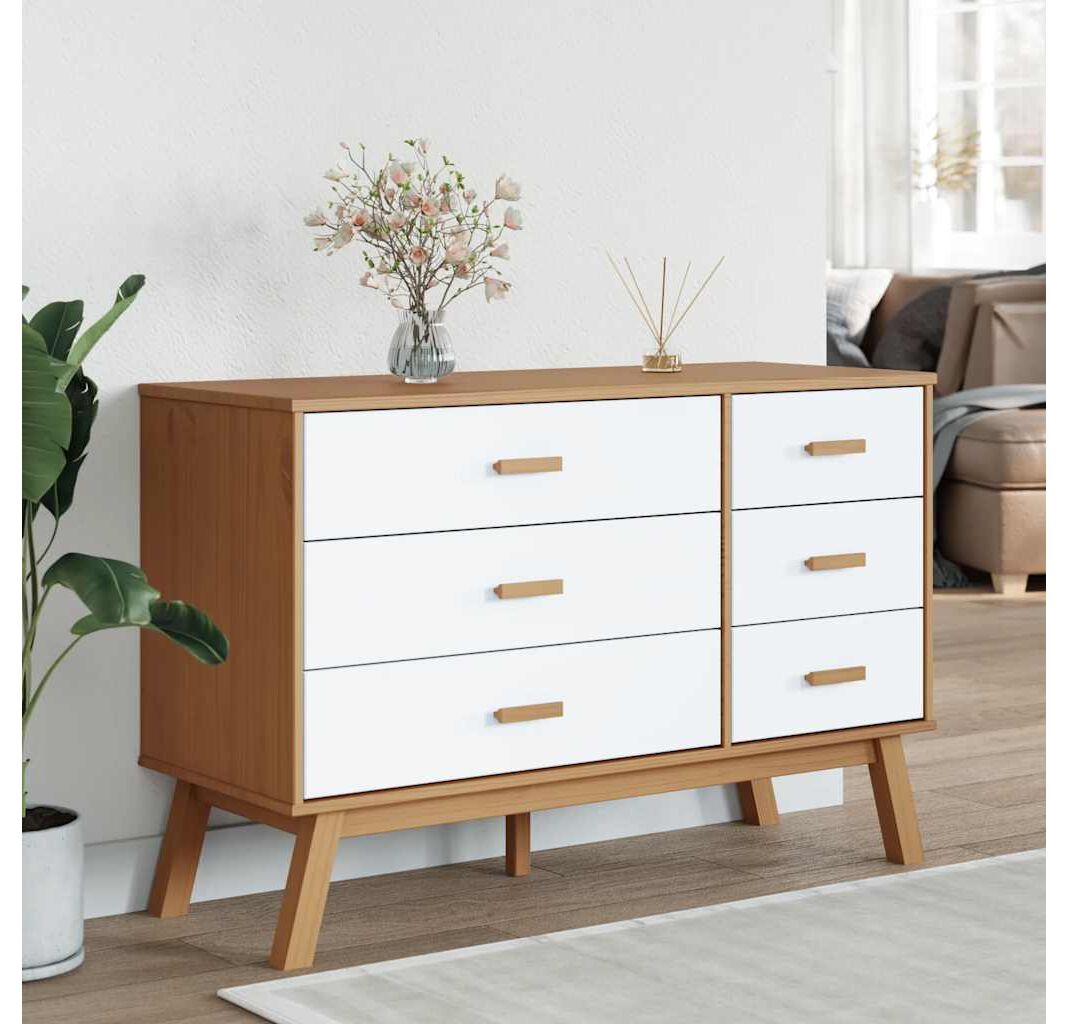Acest dulap cu sertare, din lemn, care emană un farmec scandinav, este menit să fie punctul de atracție al interiorului dvs.