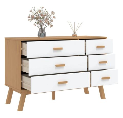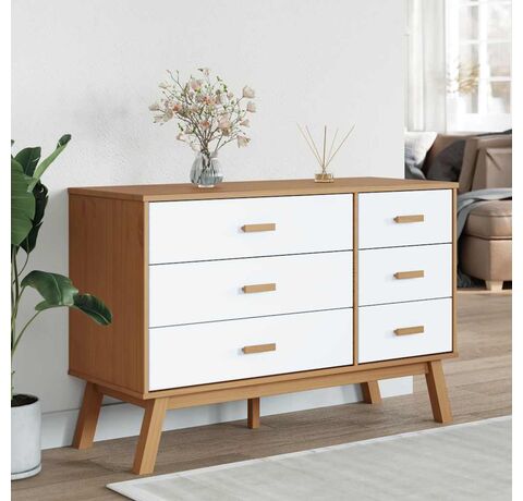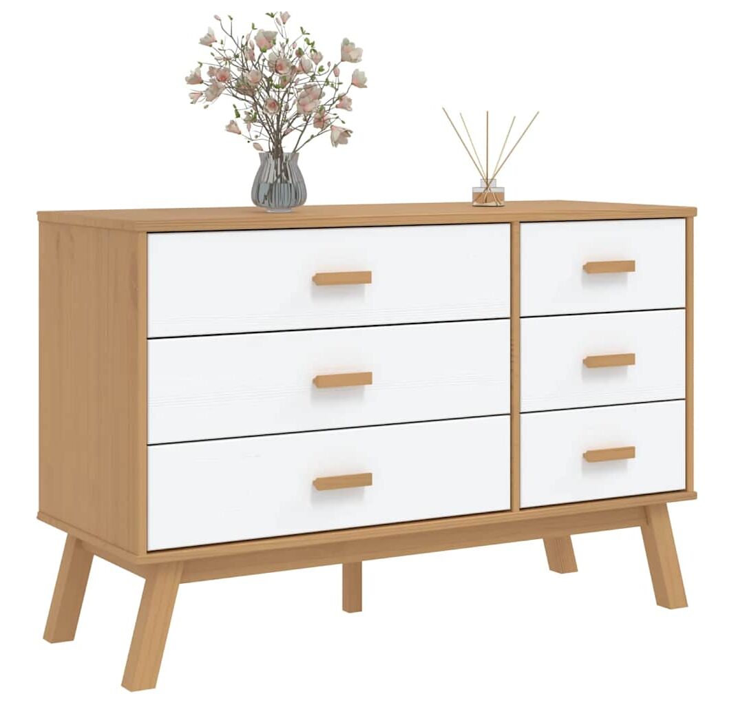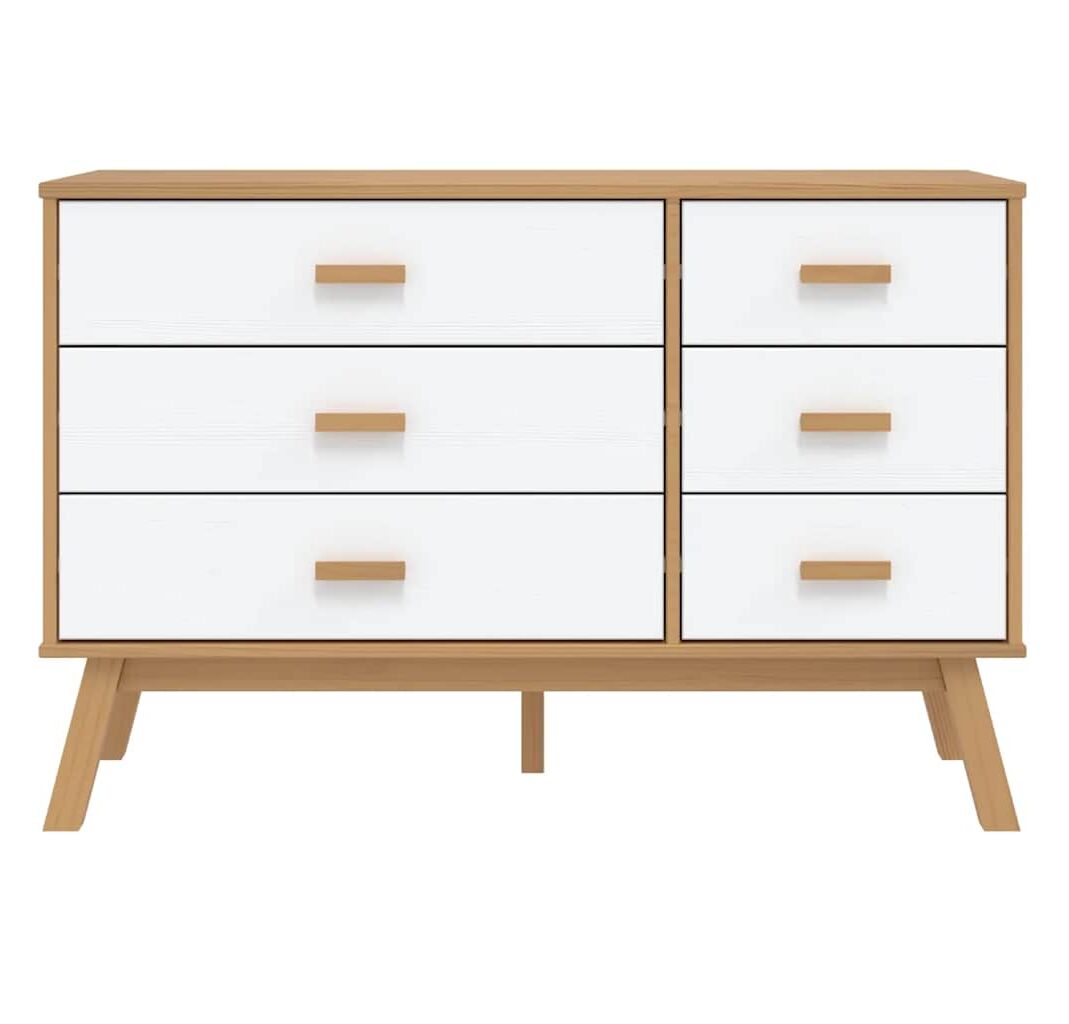 - Lemn masiv de pin: Lemnul masiv de pin este un material natural frumos. Lemnul de pin are fibre drepte, iar nodurile dau materialului originalitate și un aspect rustic. Fabricată din lemn masiv de pin, comoda cu sertare este robustă și stabilă.