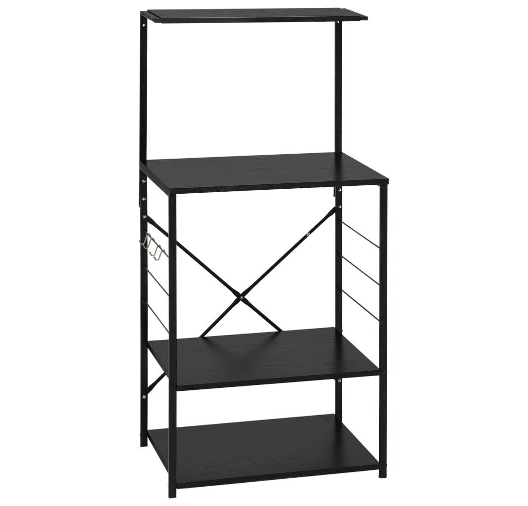 Fabricat din lemn prelucrat, raftul de perete este ușor de curățat cu o cârpă umedă. Structura din oțel îl face rezistent la rugină și îi sporește robustețea. Acest raft are 4 niveluri, care vă oferă spațiu amplu pentru depozitarea lucrurilor precum prăjitoare de pâine, condimente, farfurii și orice alte lucruri doriți. Dulapul include cârlige pentru accesorii laterale, ceea ce îl face convenabil pentru agățarea unor unelte de gătit. De asemenea, îl puteți folosi în camera de zi sau în birou pentru a vă expune obiectele de colecție, rame foto etc.