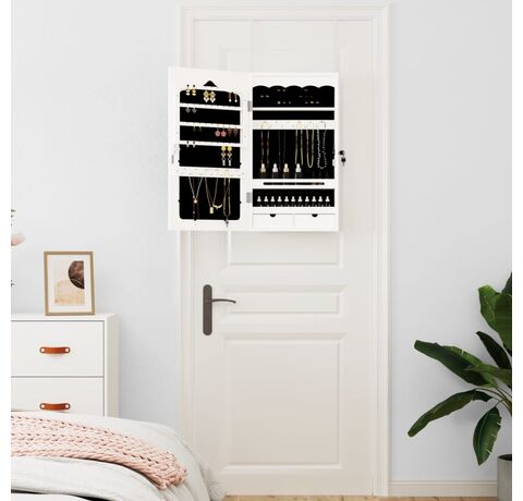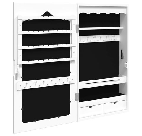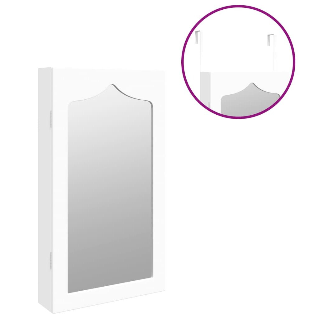 Dulap de bijuterii cu oglindă de perete, alb, 37,5x10x67 cm