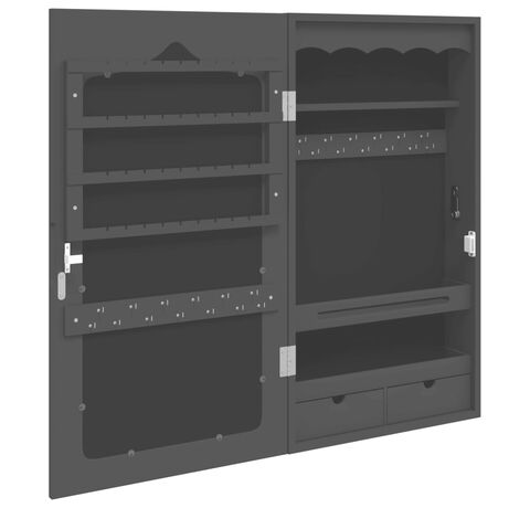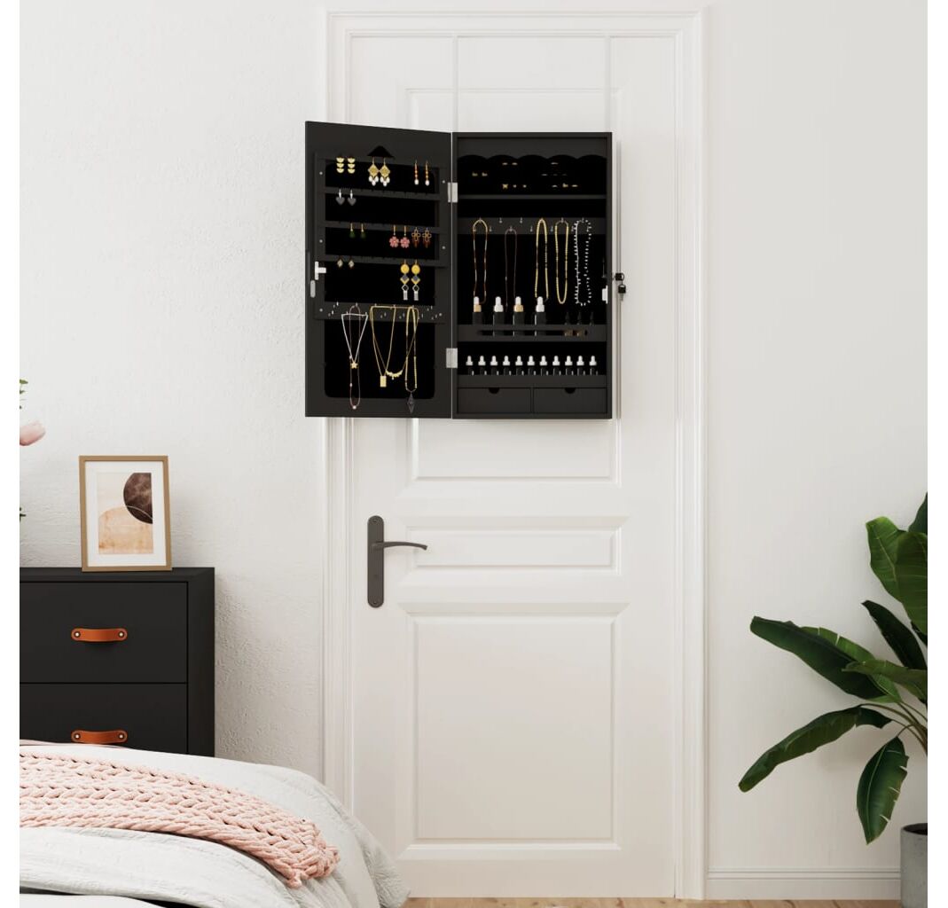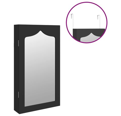 Dulap de bijuterii cu oglindă de perete, negru, 37,5x10x67 cm