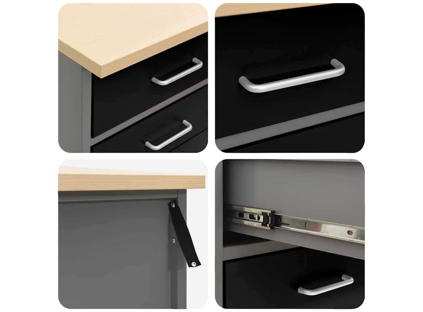 • Sertare cu Rulment cu Bile: Sertarele cu rulment cu bile se deschid ușor, făcând accesul rapid la unelte.