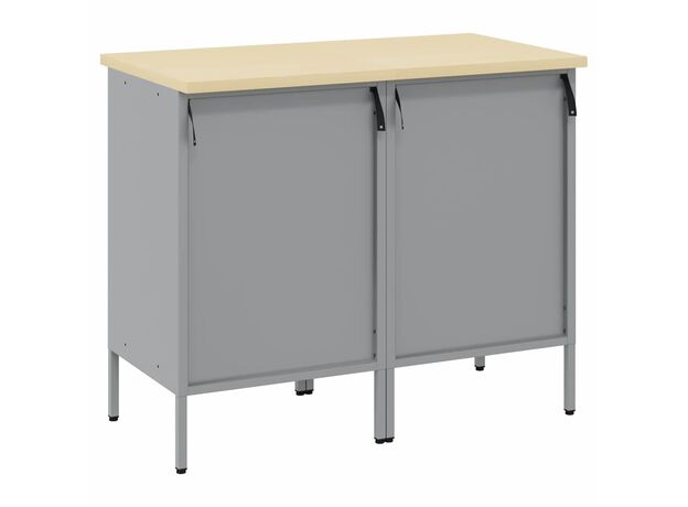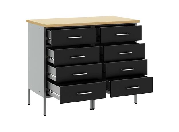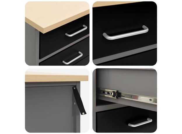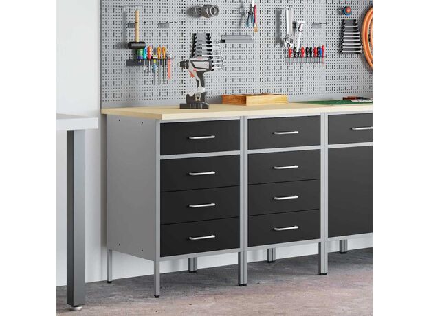 Dulapul de Lucru din Oțel Industrial oferă o stocare robustă pentru garajul și atelierul tău, plus un pic de stil. E construit pentru lucrări mai grozave, având un cadru din oțel și un blat din lemn ingineresc care sunt durabile și aduc un vibe modern zonei tale de lucru.
