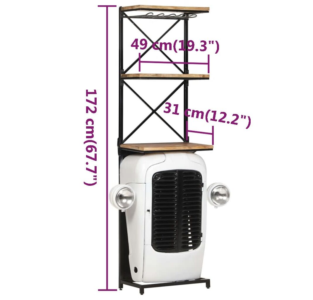 Acest raft de vinuri este fabricat din lemn de mango nefinisat, un lemn tropical de esență tare, cu forța de a susține greutatea. De asemenea, este rezistent la uzura timpului, fiind stabil și durabil. În plus, acest dulap tip tractor are 2 rafturi și 9 suporturi pentru sticle, oferind spațiu amplu pentru depozitarea vinurilor dvs., precum și diverse alte articole.