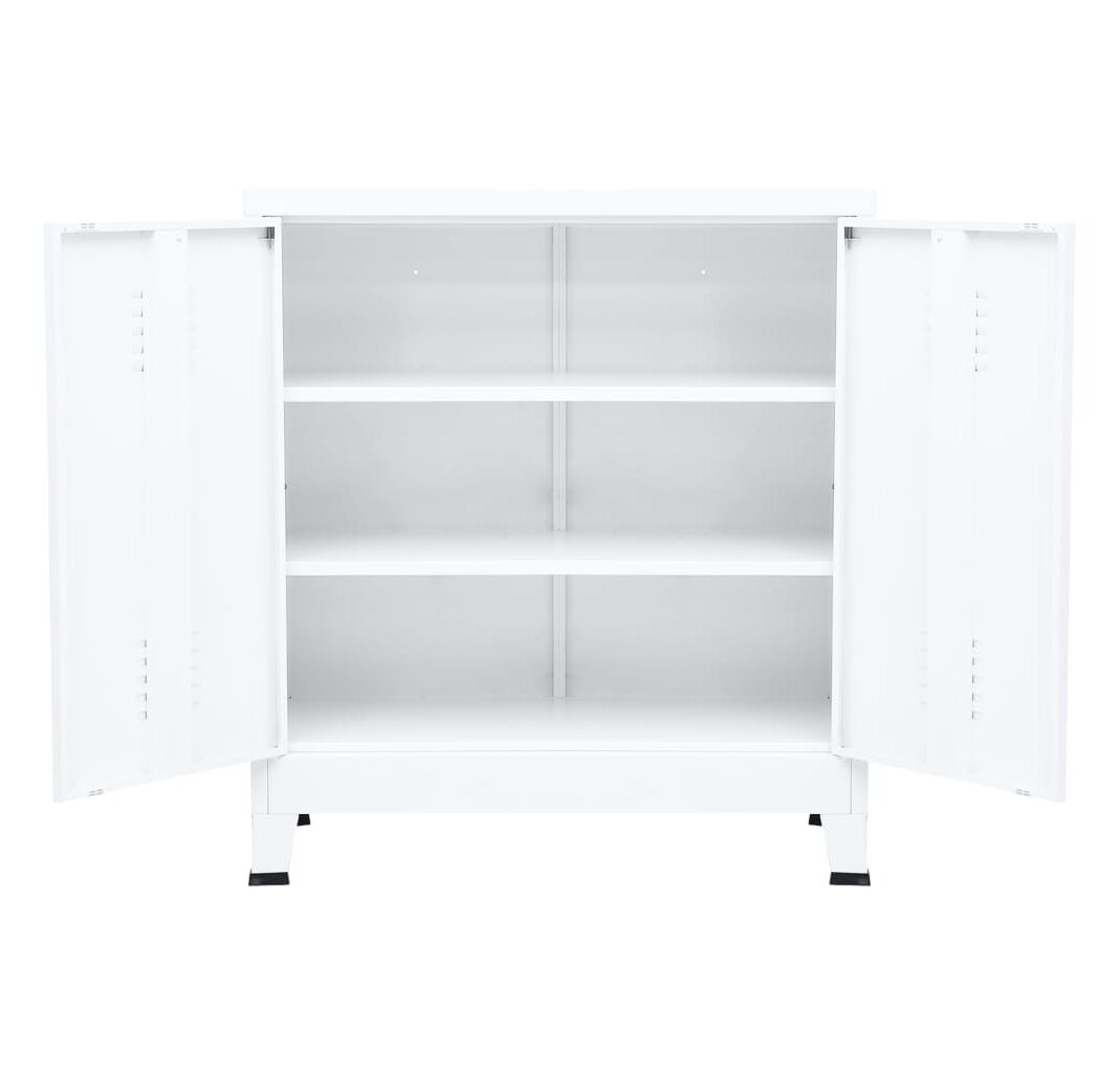 Fiind prevăzut cu 2 rafturi și etichete de nume pe uși, dulapul pentru depozitare vă permite să vă sortați în ordine dosarele, în diferite categorii. Se va potrivi oricărui decor de birou datorită designului său emblematic și farmecului industrial. Picioarele din oțel cu învelitori din plastic previn zgârierea podelelor. Acest dulap este realizat din oțel, fiind durabil și ușor de curățat. Fiecare ușă este echipată cu un suport pentru etichete cu nume și orificii de aerisire, ceea ce permite sortarea în mod organizat a articolelor dvs. și accentuarea aspectului industrial.