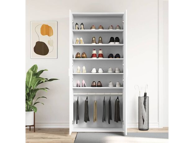 Dulap Pantofi Alb 80x39x180 cm Lemn Ingineresc