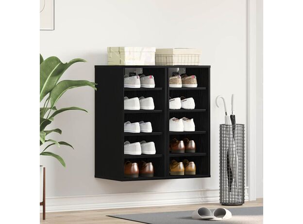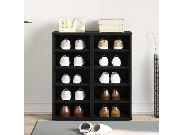 Acest raft pentru pantofi combină stocarea eficientă cu un design modern, fiind un must-have pentru casa ta. Dimensiunile perfecte de 32 x 35 x 70 cm se potrivesc bine în holuri, dormitoare sau dressinguri, oferind un loc organizat pentru toate încălțările tale, adăugând în același timp un aer stylish cu finisajul său din stejar mat negru.