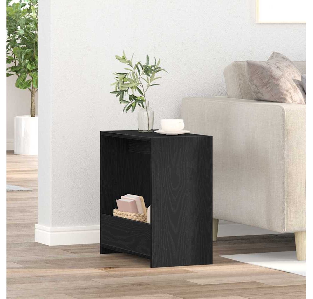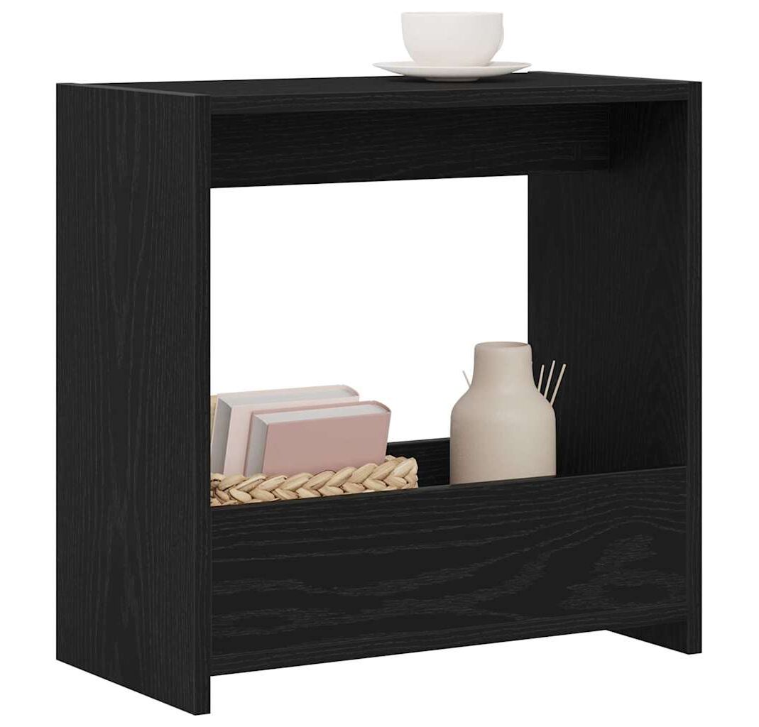 Această masă laterală din stejar negru are un vibe minimalist perfect pentru o cameră de zi sau un dormitor. Suprafața netedă și spatele finisat nu doar că arată bine, dar are și un rol practic, făcând-o o adăugare plăcută la mobilierul tău.