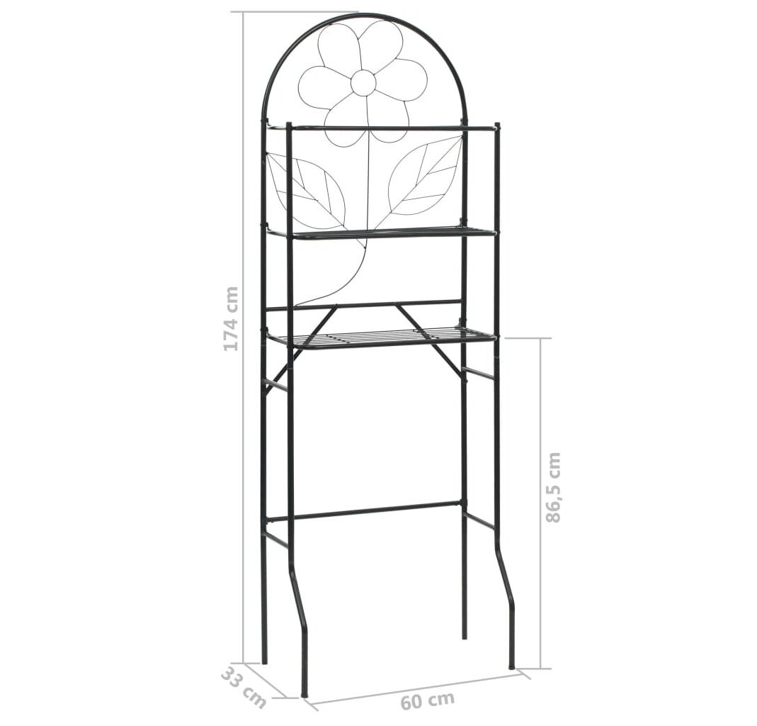 Etajera de toaletă este alcătuită dintr-un cadru din oțel robust, fiind stabilă și durabilă. Etajera oferă spațiu amplu pentru așezarea diferitelor articole de baie. Designul frumos cu flori adaugă un farmec de eleganță în baia dvs. Organizatorul poate fi folosit și pentru mașinile de spălat. Etajera de toaletă este ușor de asamblat.