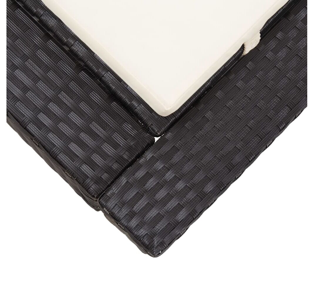 Fiind fabricat din ratan PE rezistent la intemperii, acest șezlong este ușor de curățat, rezistent la uzură și potrivit pentru uz zilnic. Patul de zi este prevăzut cu un cadru din oțel vopsit electrostatic, fiind foarte stabil și durabil. Ambele laturi ale șezlongului pot fi trase în sus și ajustate în diferite configurații, pentru cele mai confortabile poziții, de la cea de ședere la întins. Perna capitonată în strat gros va oferi confort sporit și un plus de suport. Datorită designului cu fermoar, husa de pernă este detașabilă pentru a fi ușor de spălat. Pachetul de livrare include 1 șezlong și 2 perne de șezut mari.