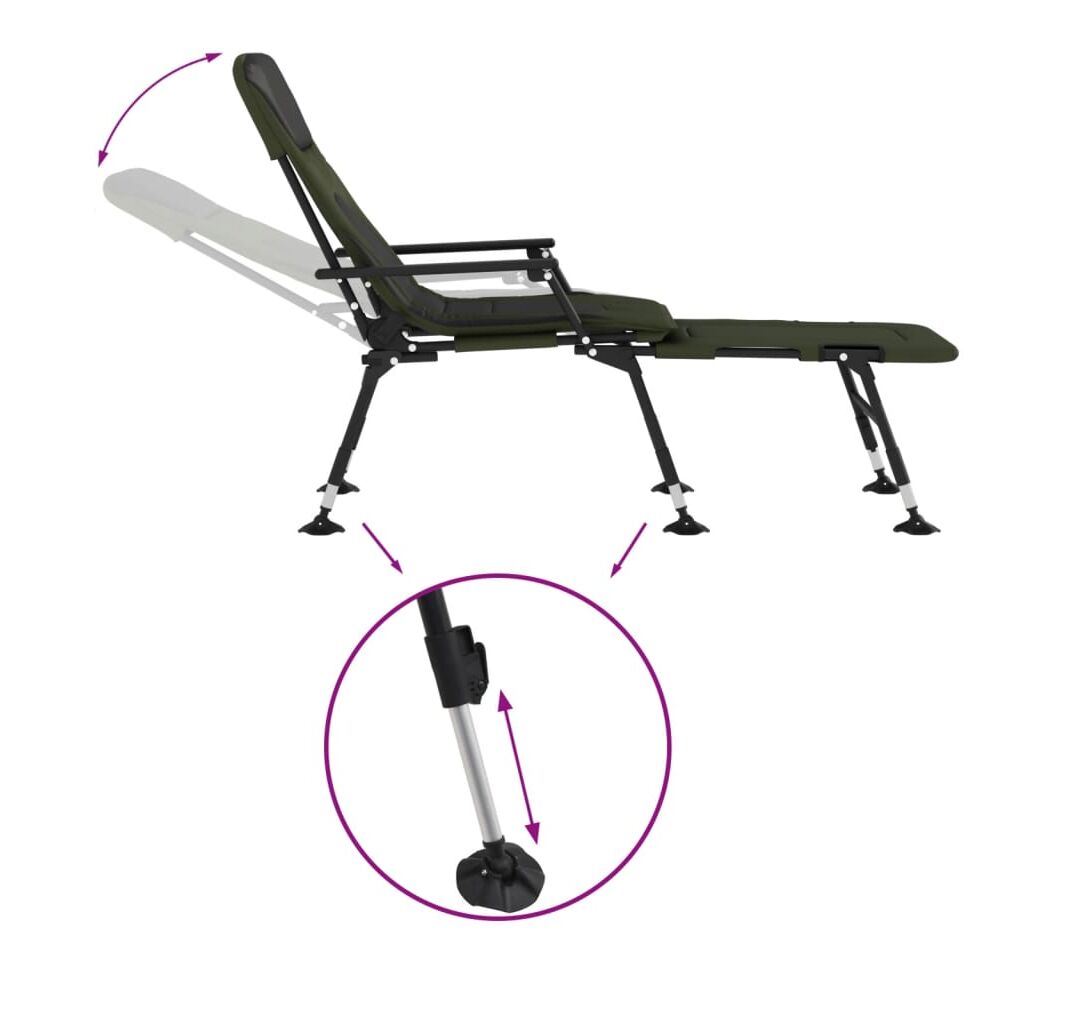 - Durabil și robust: Șezlongul de pescuit este fabricat din oțel cu un strat vopsit electrostatic, asigurând durabilitate și robustețe, pentru utilizare pe termen lung.