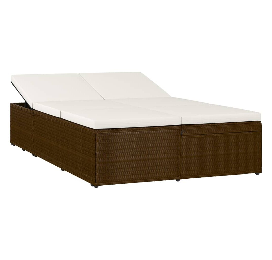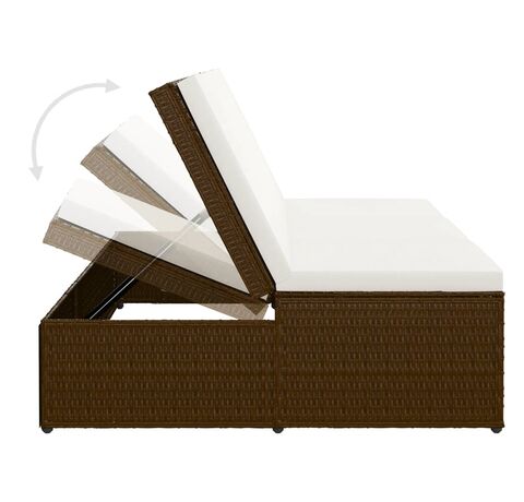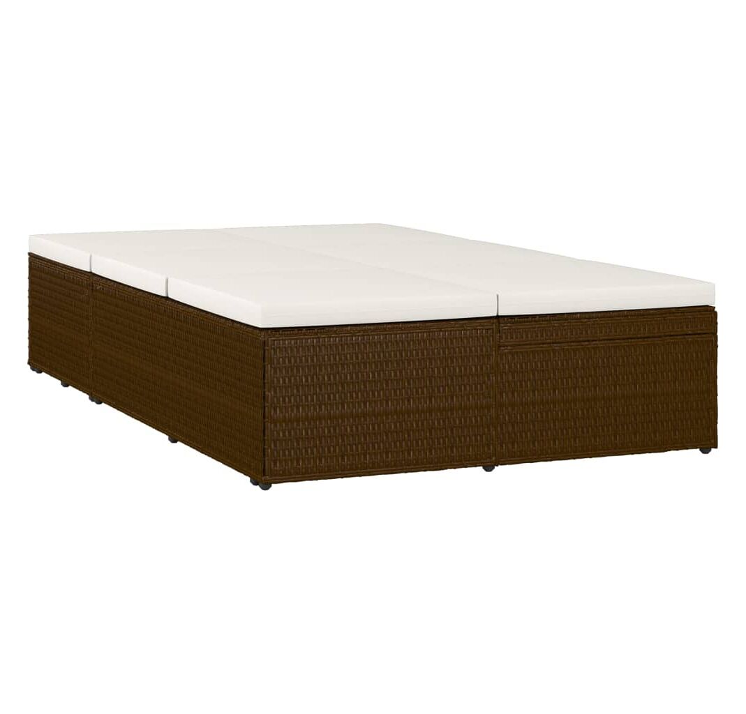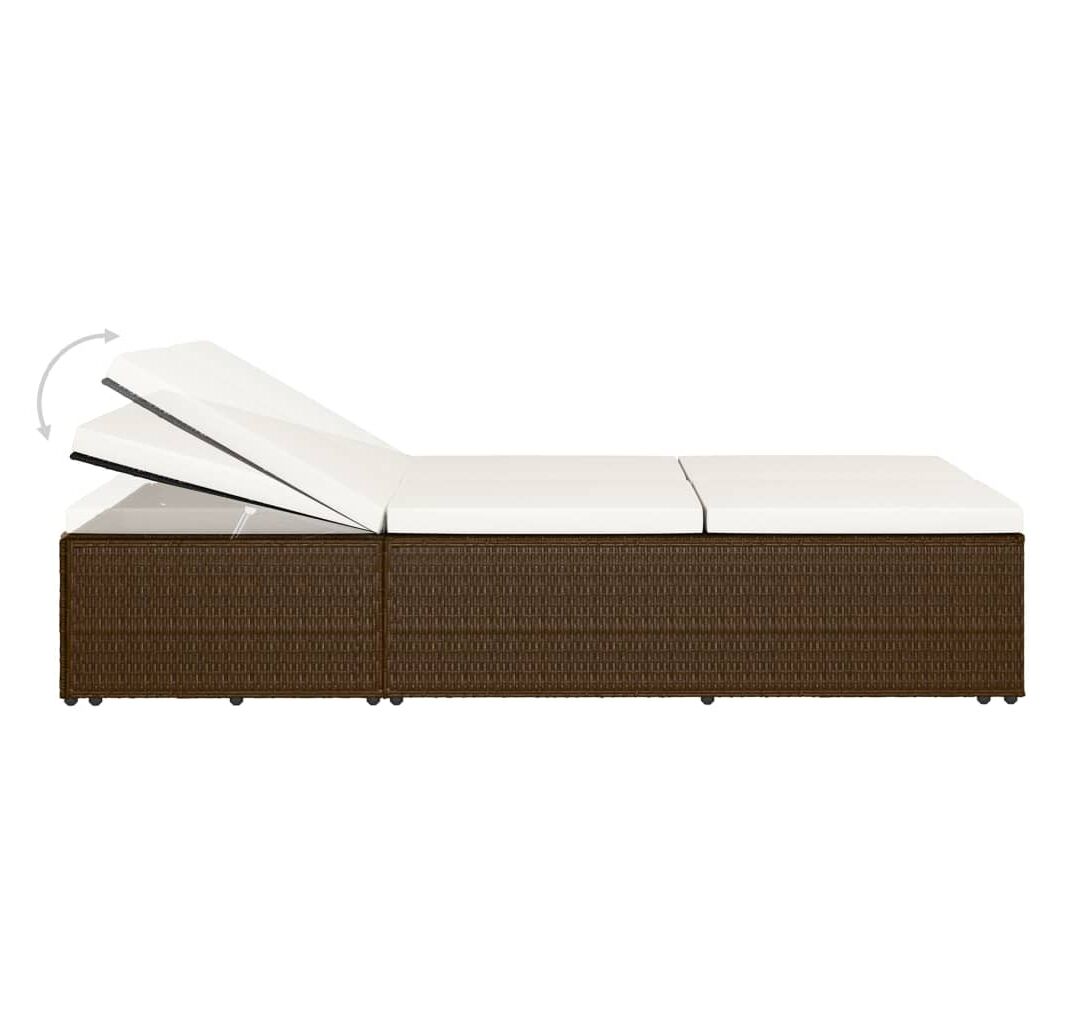 Șezlong tip pat rabatabil cu pernă, maro, poliratan