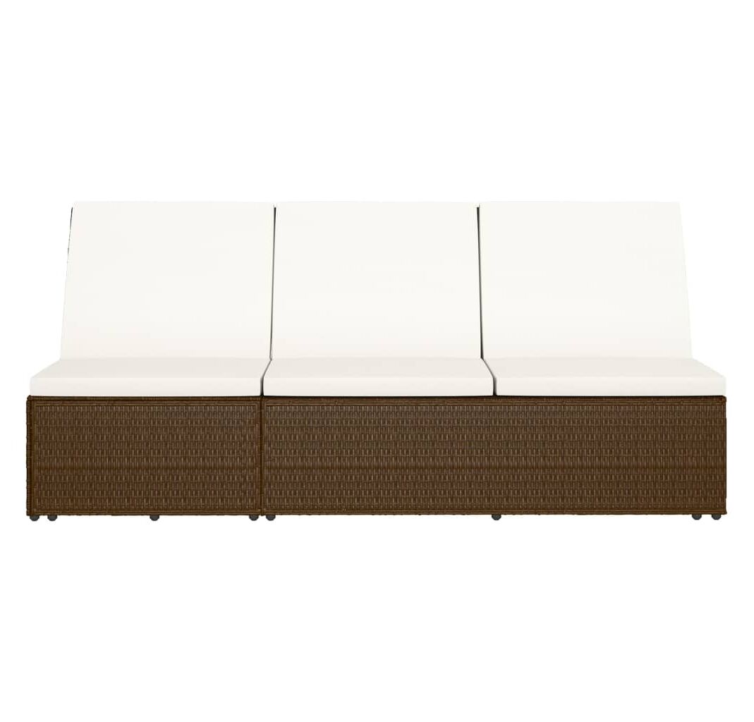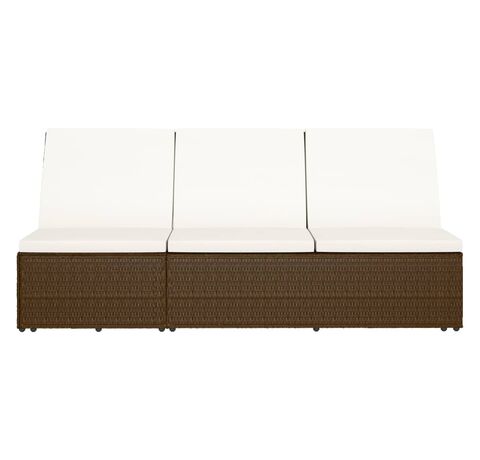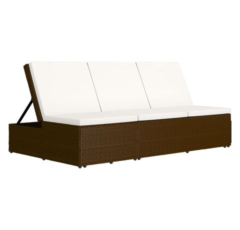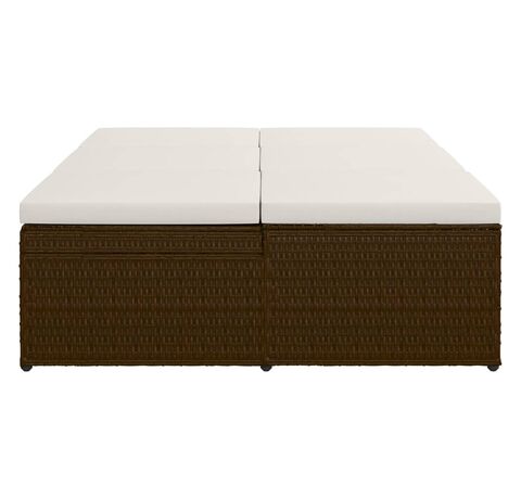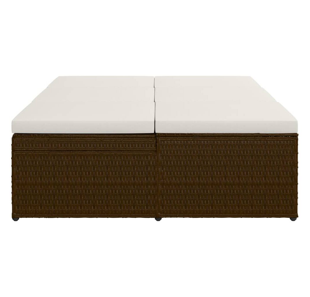 Șezlong tip pat rabatabil cu pernă, maro, poliratan