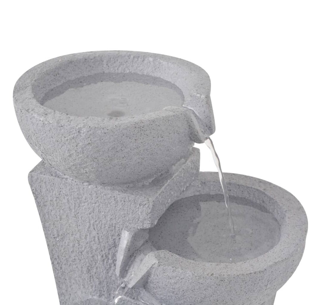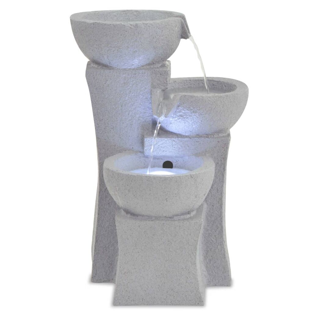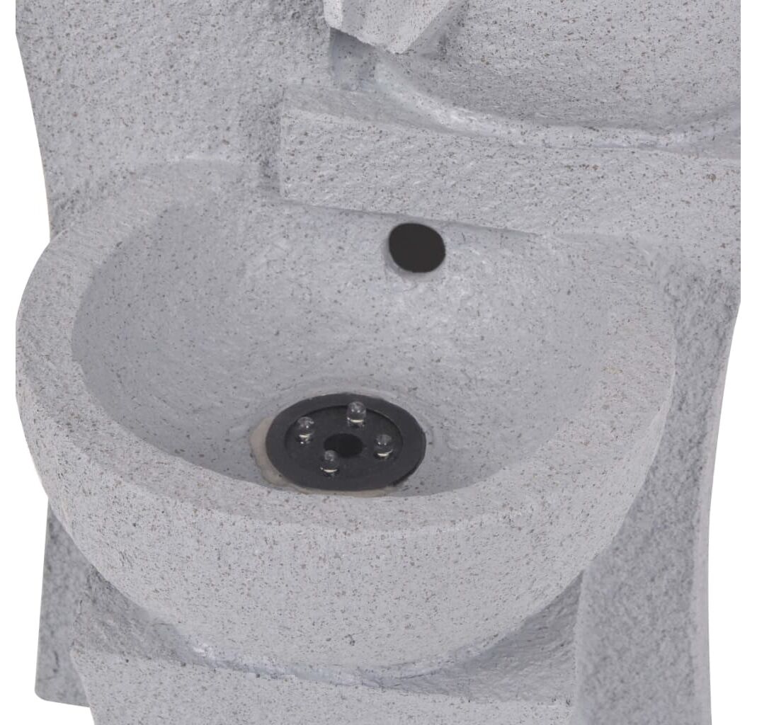 Fântâna este realizată din polirășină. Fluxul de apă în cascadă este iluminat cu LED-uri, ceea ce oferă un efect vizual uimitor, mai ales noaptea. Fluxurile multiple de apă curg și sunetul liniștitor al apei care se prelinge creează o atmosferă relaxantă și meditativă. Pompa inclusă, de înaltă calitate, asigură o funcționare sigură și fiabilă.