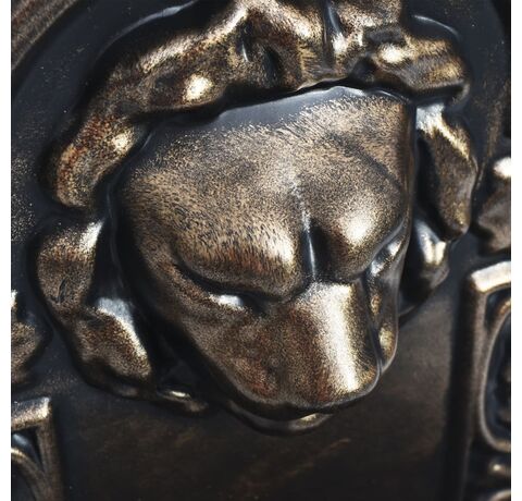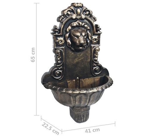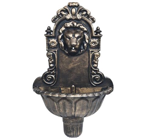 Această fântână de perete, în stil vintage, are un design cu cap de leu. Fântâna poate fi montată ușor și rapid pe un perete. Această fântână de perete este prevăzută cu o pompă de apă, ce curge lin, iar apa este recirculată în mod continuu.
