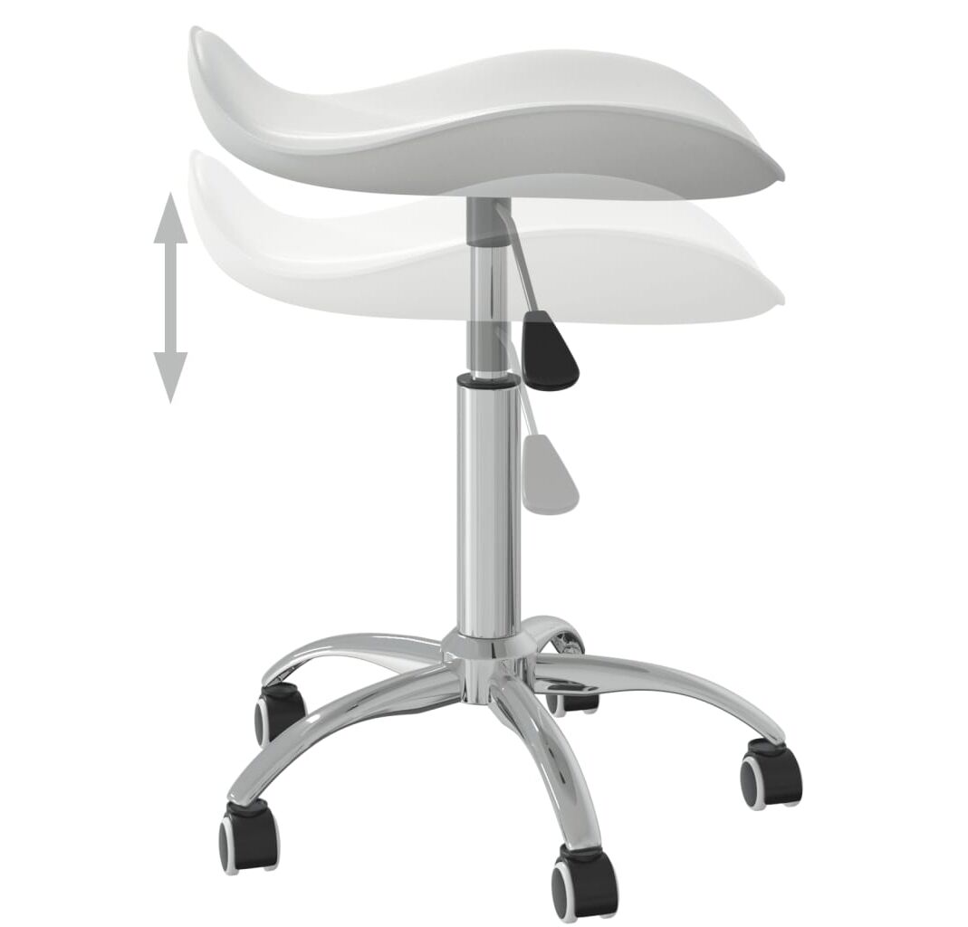 Acest taburet de lucru este tapițat cu piele ecologică ușor de curățat, oferind confort maxim la ședere. Scaunul de salon are înălțime reglabilă și se rotește la 360 de grade, fiind perfect pentru orice necesitate. În plus, cele cinci roți oferă o mobilitate maximă.