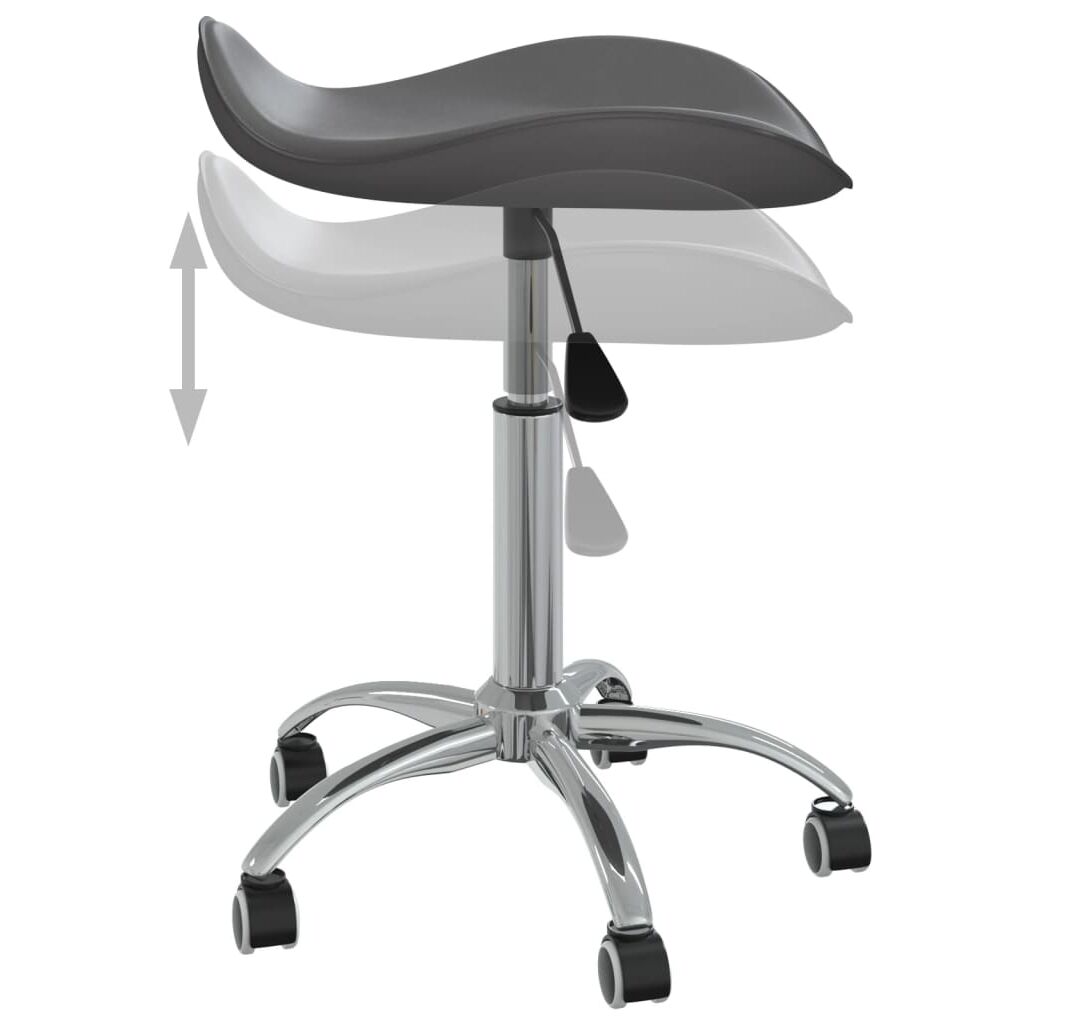 Acest taburet de lucru este tapițat cu piele ecologică ușor de curățat, oferind confort maxim la ședere. Scaunul de salon are înălțime reglabilă și se rotește la 360 de grade, fiind perfect pentru orice necesitate. În plus, cele cinci roți oferă o mobilitate maximă.