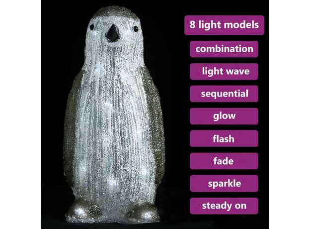 Acest Moș Crăciun este fabricat din material acrilic rezistent. În plus, această decorațiune de Crăciun dispune de 25 de LED-uri, care sunt eficiente din punct de vedere energetic și durabile. Proiectat cu 8 efecte de iluminare diferite: o combinație a tuturor efectelor, strălucire lentă, sclipire / intermitent, în valuri, urmărire / curgere a apei, secvențială, constantă și decolorare lentă, se aprinde frumos și creează o atmosferă magică de sărbătoare. Datorită carcasei impermeabile pentru baterie, figurina Moș Crăciun poate fi folosită și în aer liber.