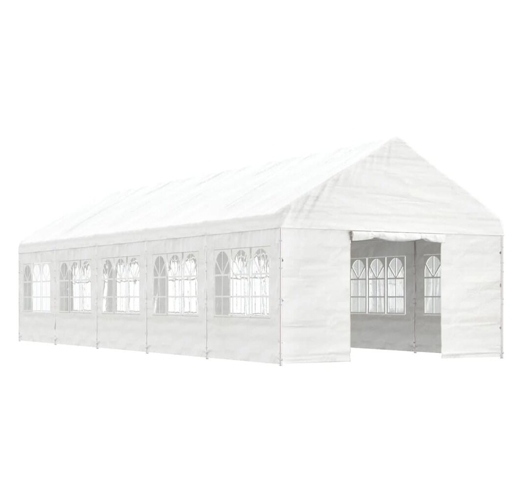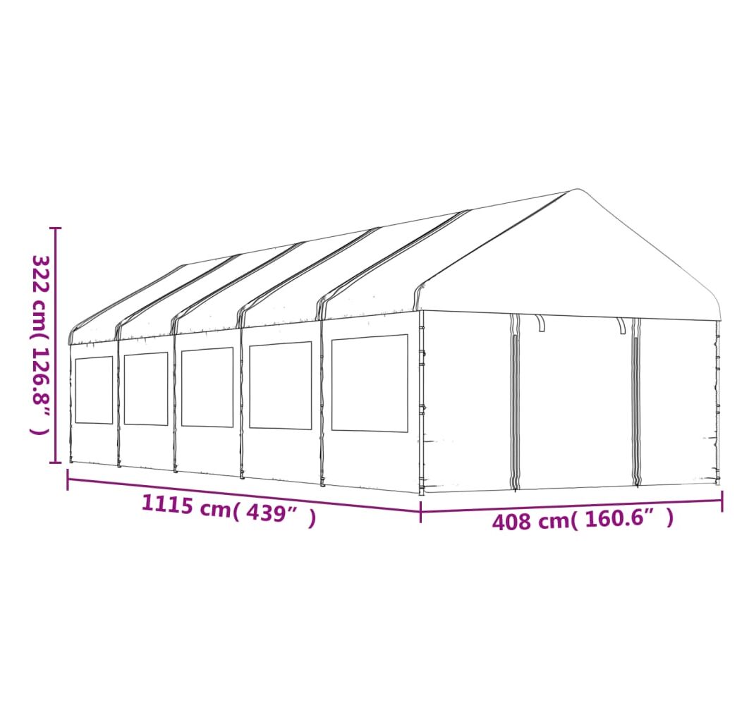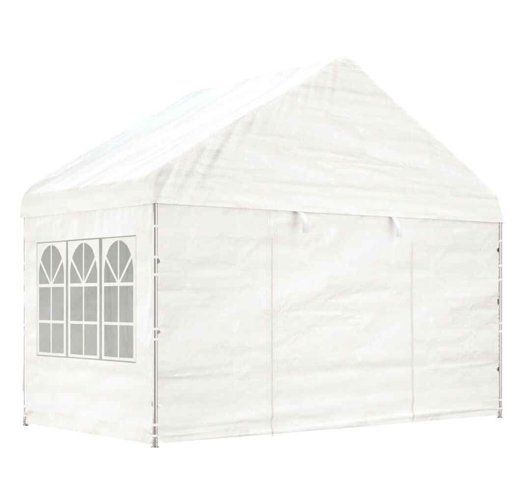Foișor cu acoperiș, alb, 11,15x4,08x3,22 m, polietilenă