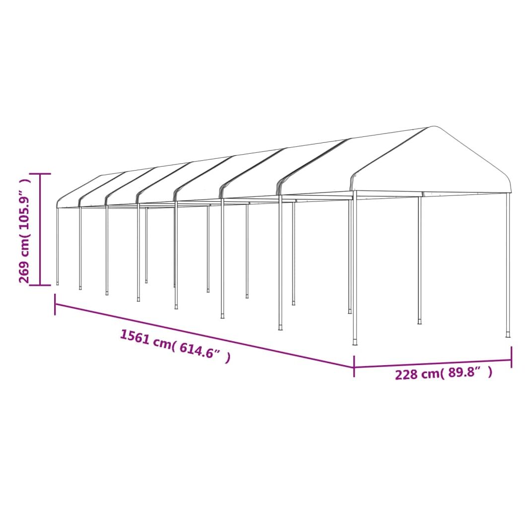 Foișor cu acoperiș, alb, 15,61x2,28x2,69 m, polietilenă