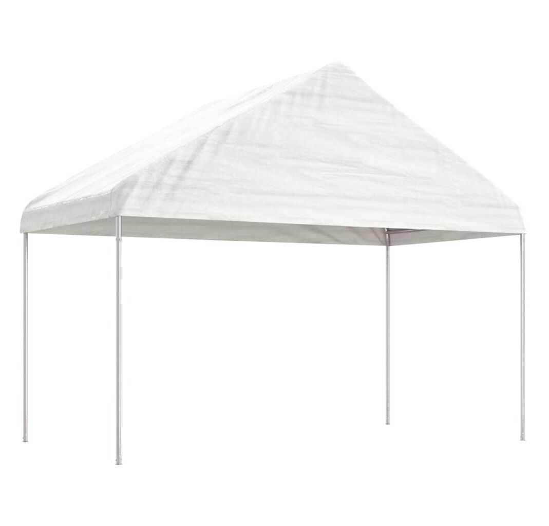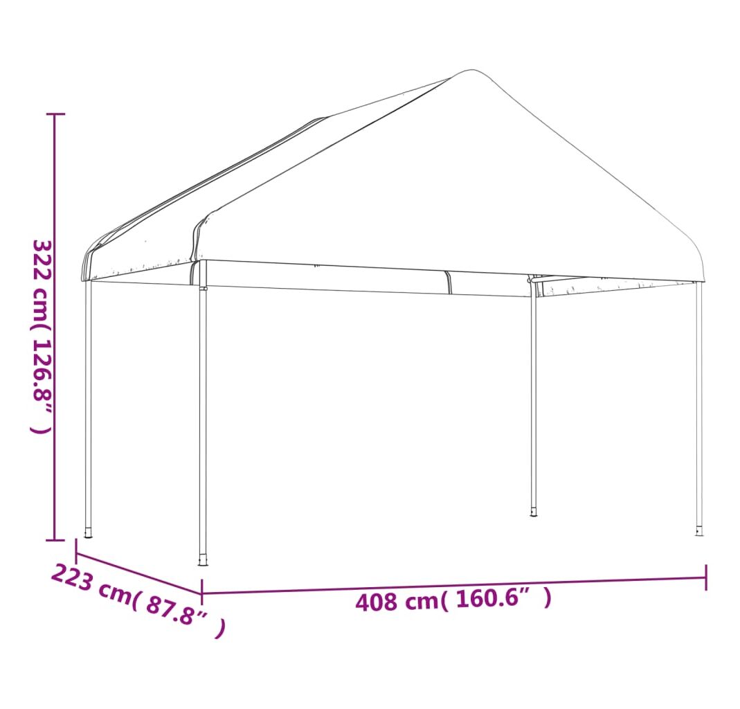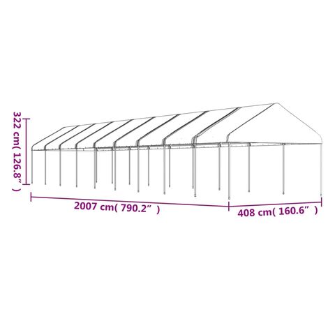 Foișor cu acoperiș, alb, 20,07x4,08x3,22 m, polietilenă