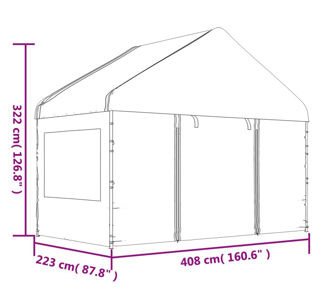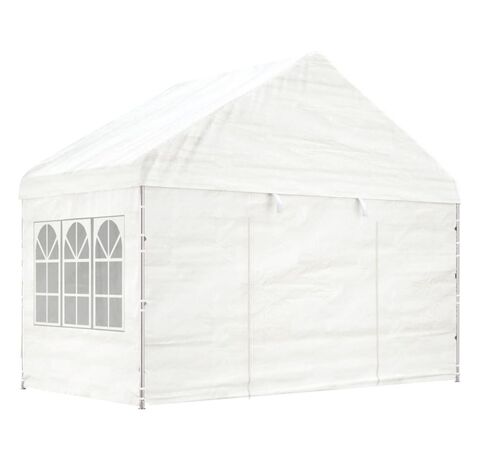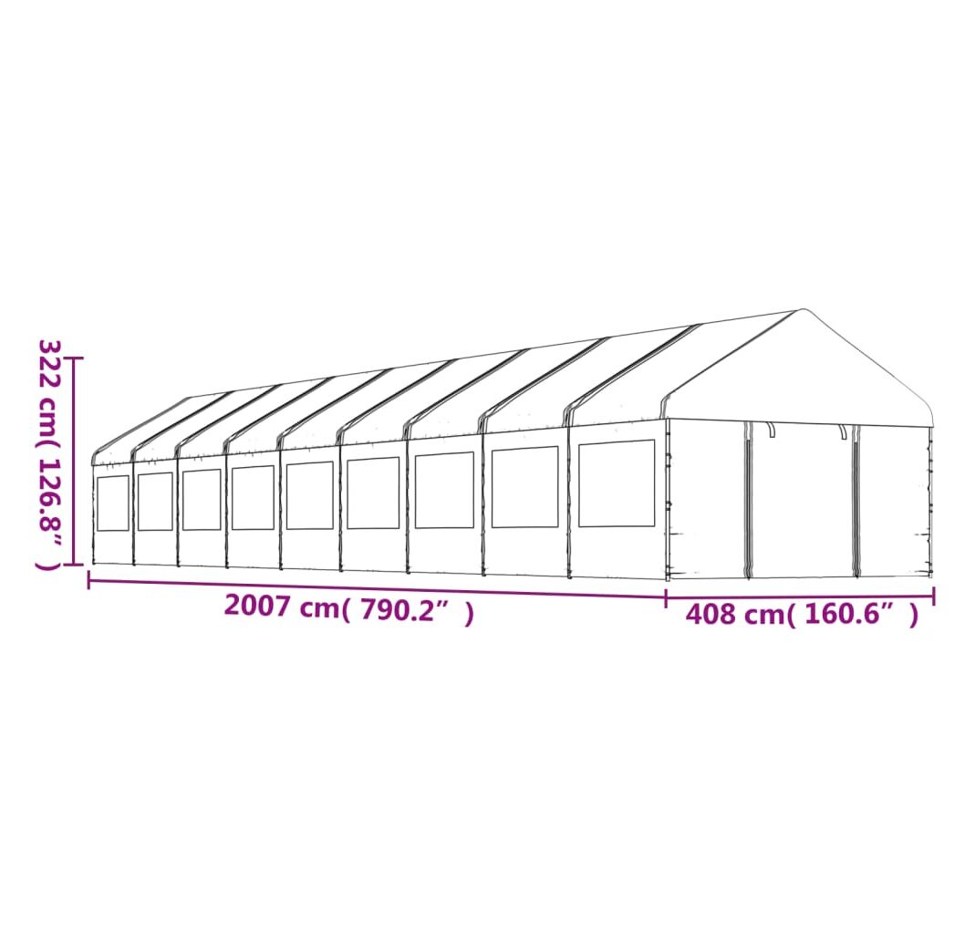Foișor cu acoperiș, alb, 20,07x4,08x3,22 m, polietilenă