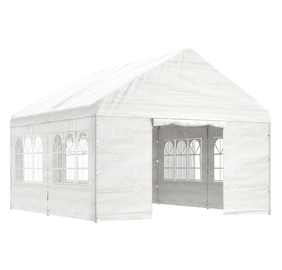 Acest foișor cu acoperiș și pereți laterali este un adăpost ideal împotriva soarelui.