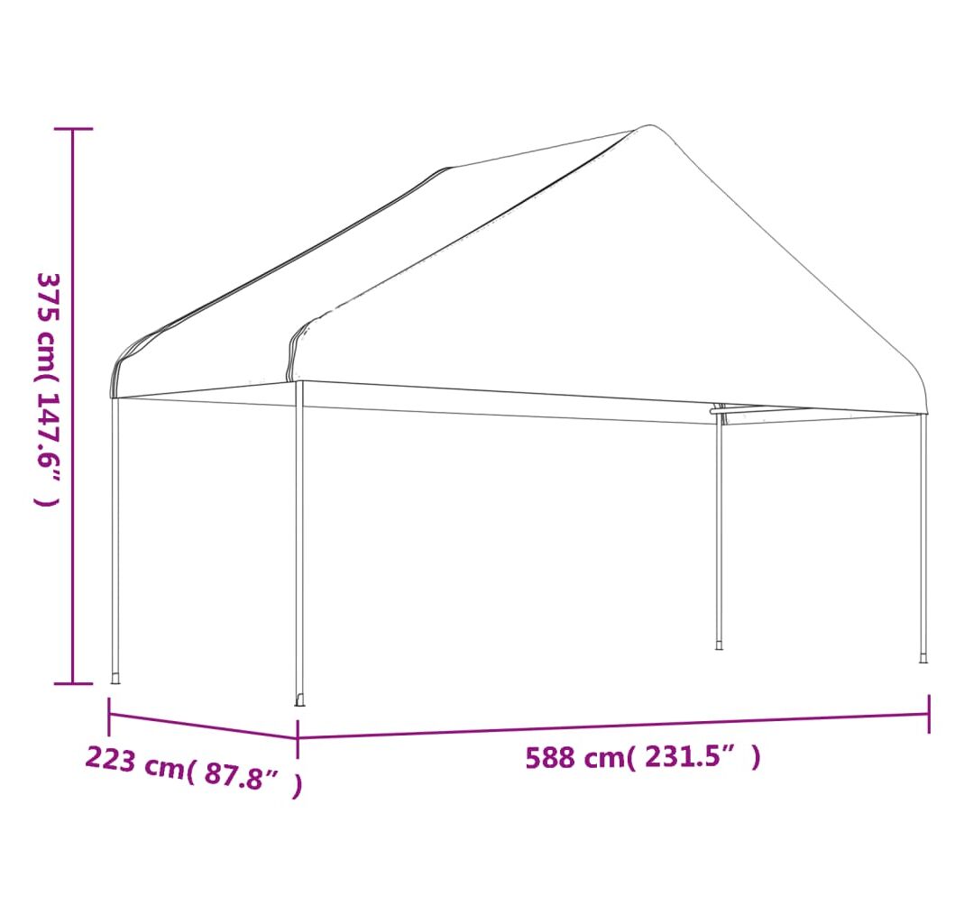 Foișor cu acoperiș, alb, 5,88x2,23x3,75 m, polietilenă