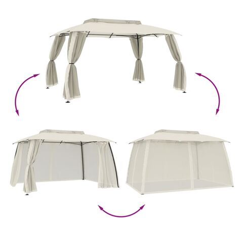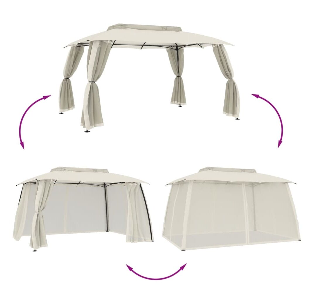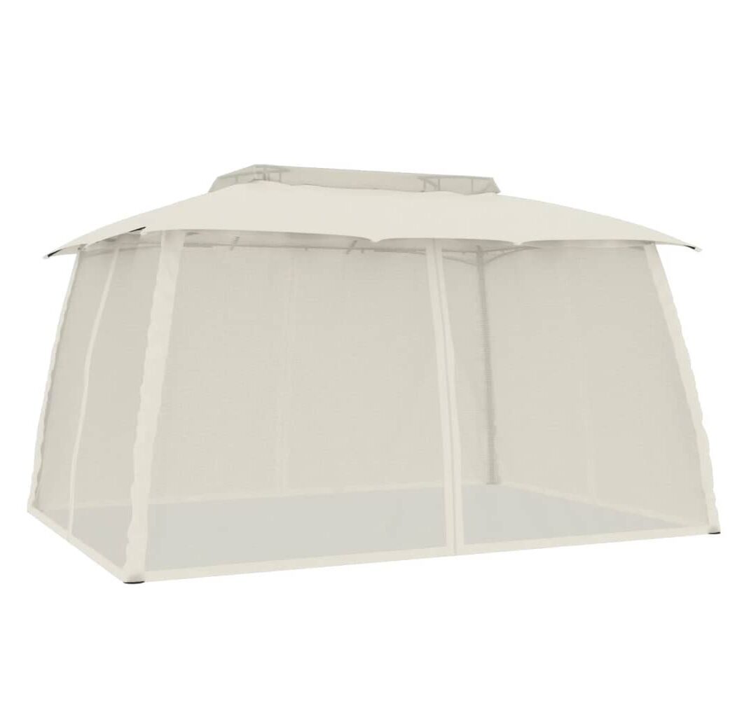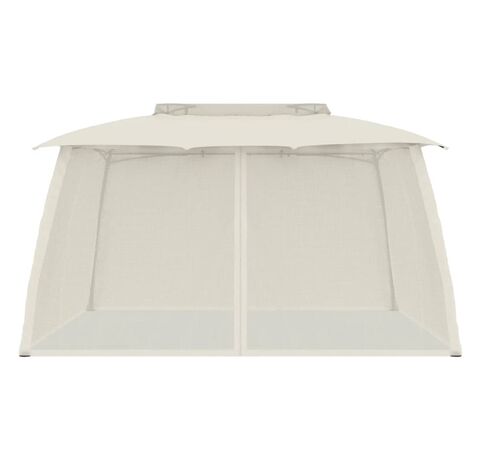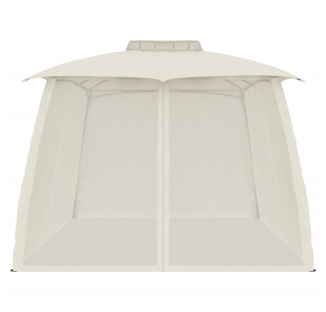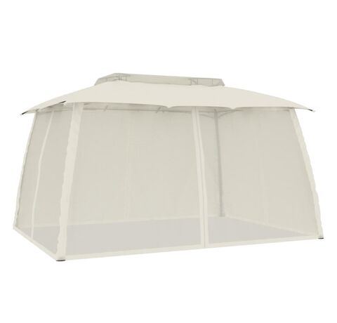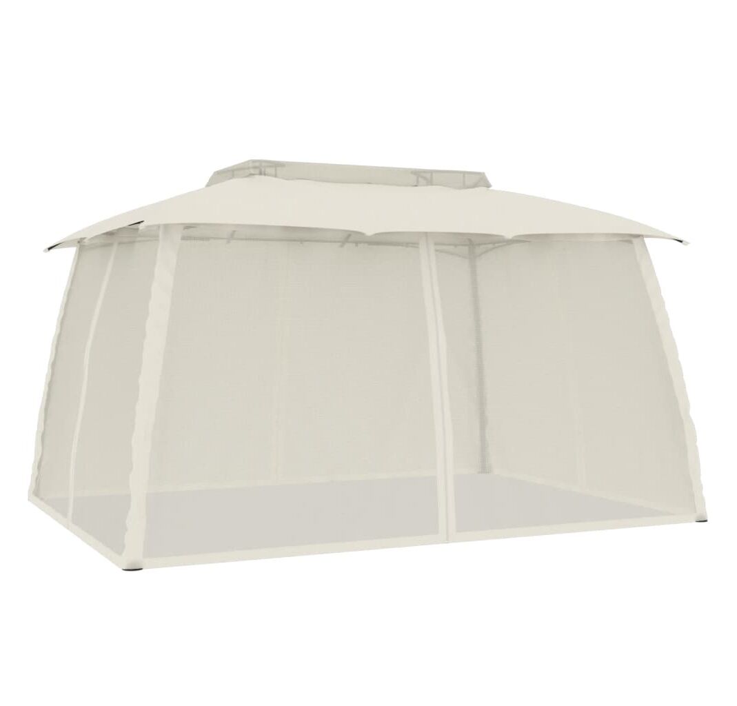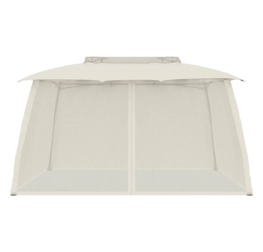 Foișor cu acoperiș dublu/pereți din plasă crem 3,93x2,93 m oțel
