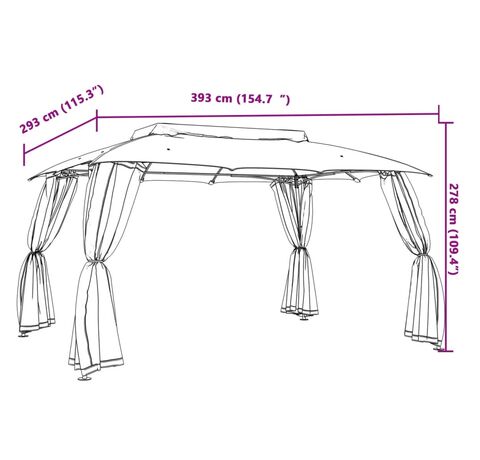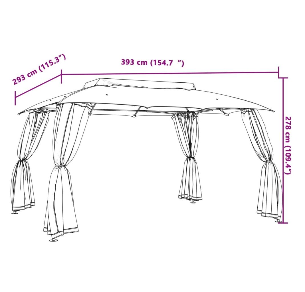 Cantitatea minima pentru "Foișor cu acoperiș dublu/pereți din plasă crem 3,93x2,93 m oțel" este 1.