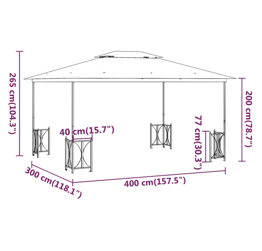 - Material premium: foișorul de grădină este construit cu un cadru din oțel vopsit electrostatic. Prin urmare, este foarte robust și durabil. Acoperișul este realizat din poliester 100% cu acoperire PA, care este rezistent la apă și poate bloca cele mai dăunătoare raze.