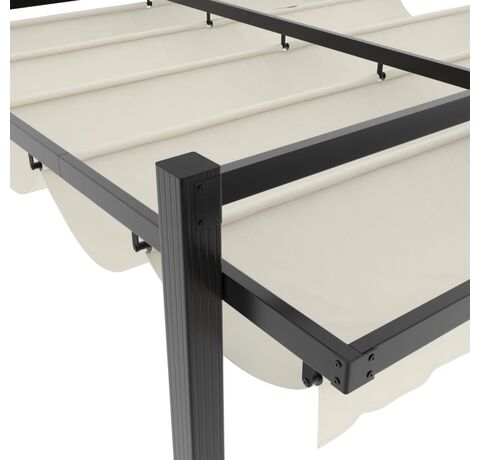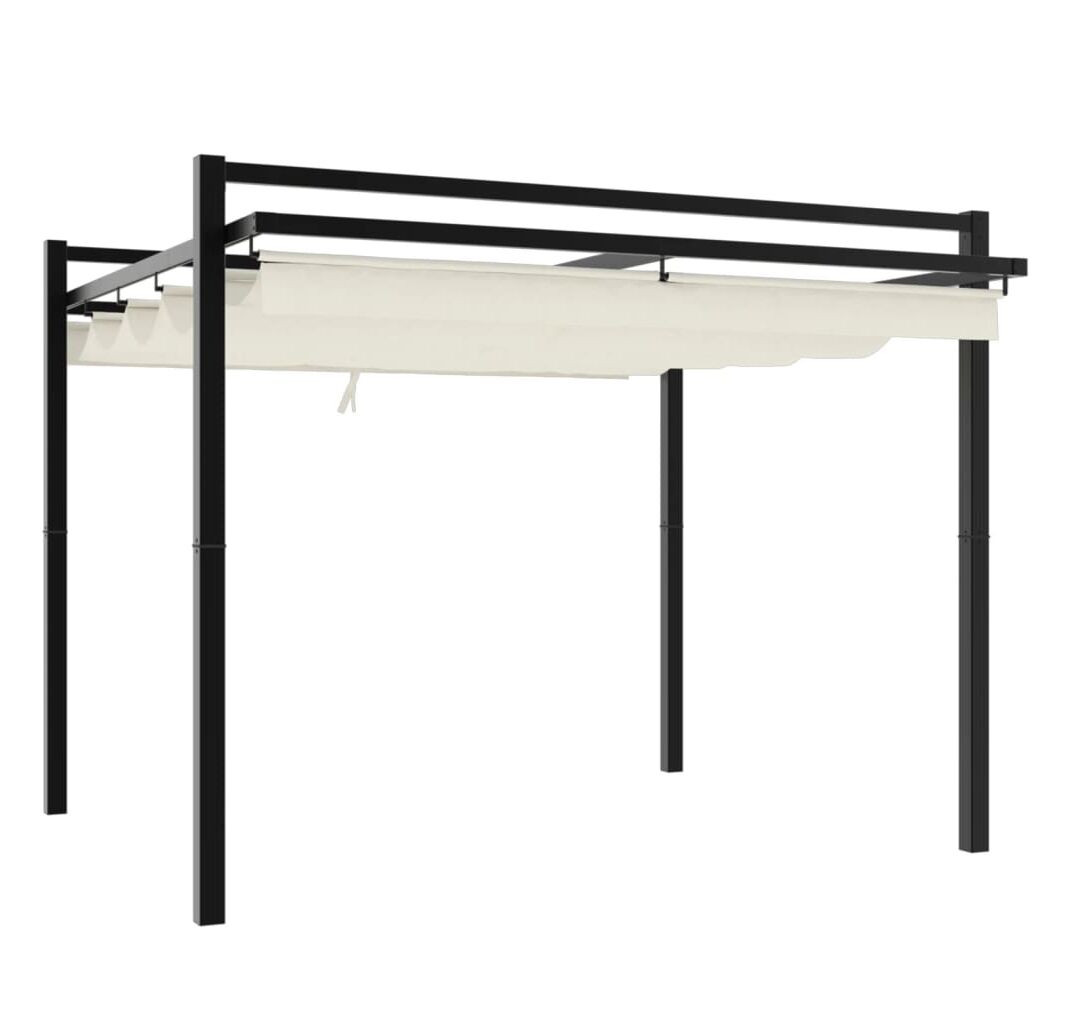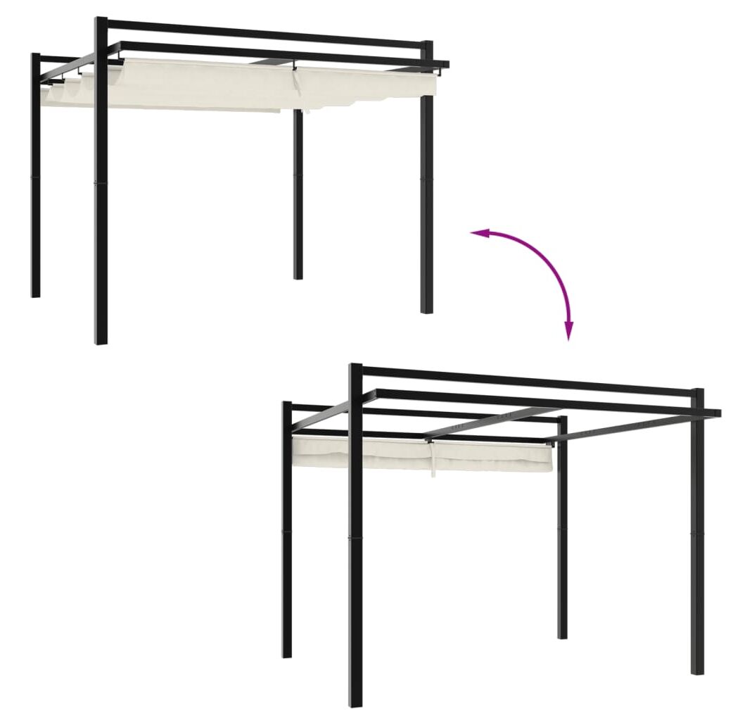 - Acoperiș retractabil: Acoperișul este realizat din poliester durabil, cu un strat de PA rezistent la apă și UV. În plus, acoperișul este retractabil, astfel încât îl puteți regla pentru umbră optimă și un mediu exterior confortabil, în zilele fierbinți de vară.