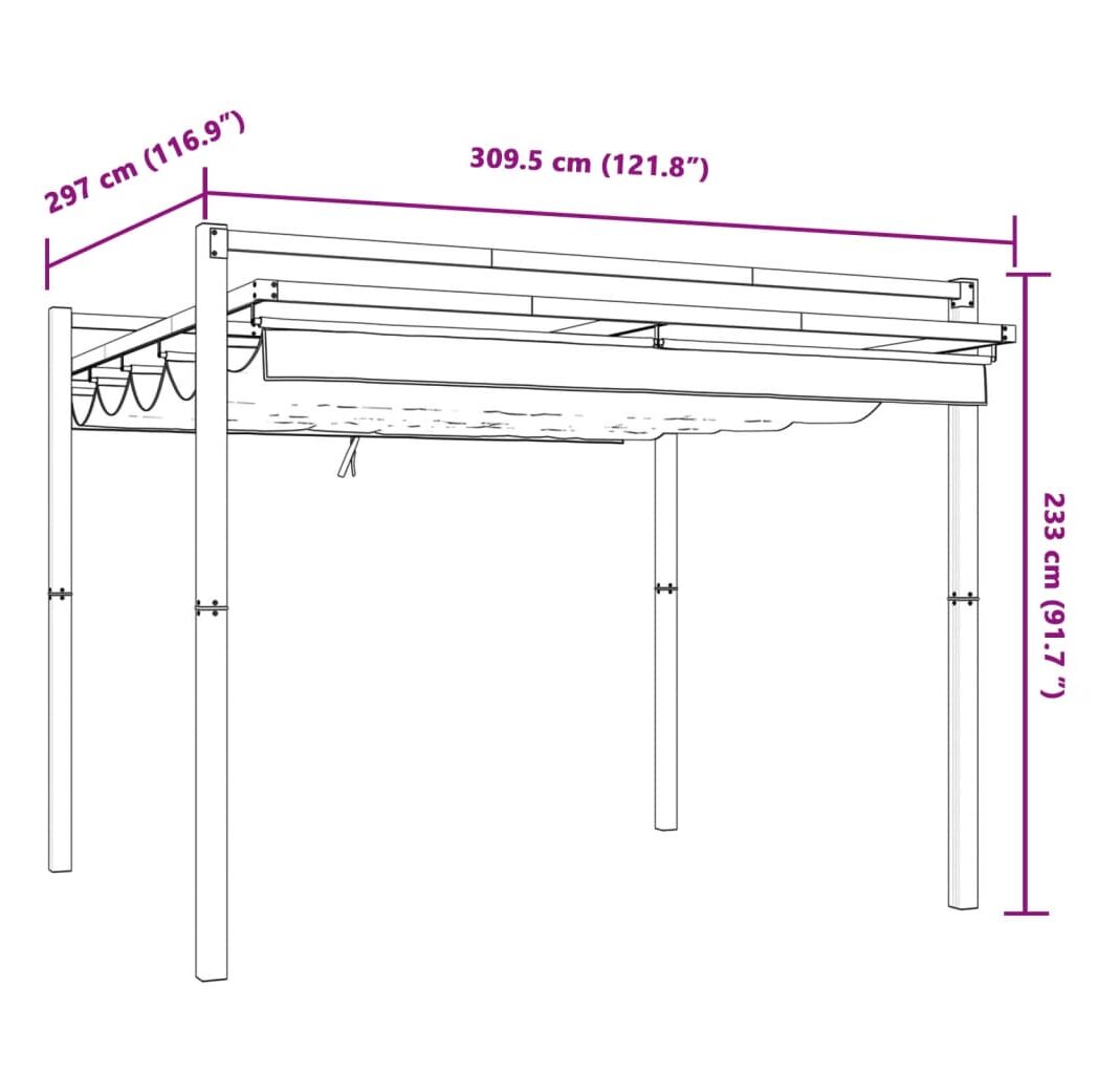 - Dimensiuni totale: 309,5 x 297 x 233 cm (L x l x î)